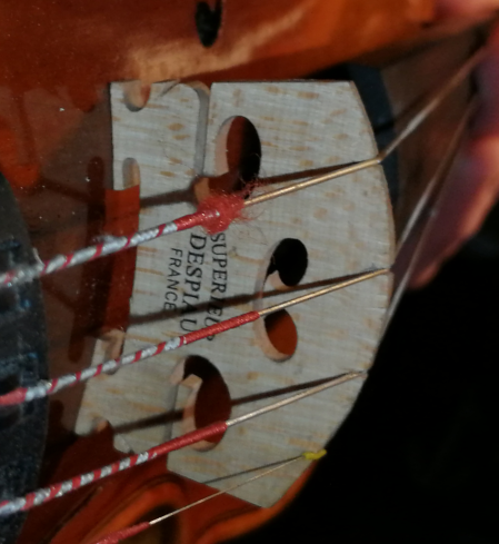 >>1074367 Должен сказать, за 1.5 года струны прорезали подставку, которую делал мастер, особенно струна Ре, из-за чего при штрихе с акцентом задеваются Ля или Соль. Препод сказал, что можно как-то подточить, но это очень сомнительно. Хз что делать, играть "для себя" ещё терпимо можно.