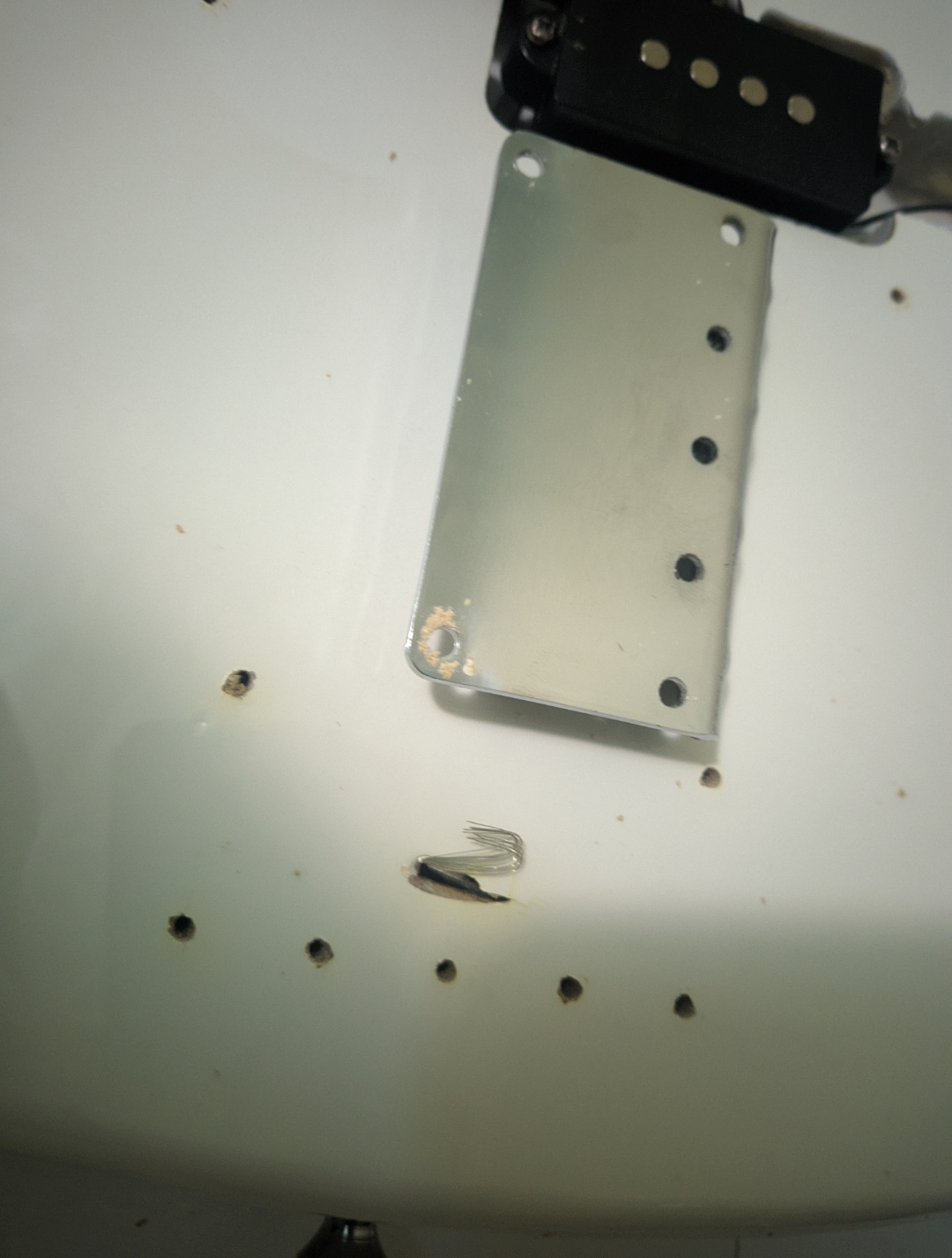 А, ну и еще на моей стреле с завода не было земли на струнах. Я такое только на советских гитарах видел, я хуй знает почему она настолько хорошая по дереву, но при этом им было так похуй на пластик и электронику. Звучок в ней уже не родной в бридже стоит, родной был просто пердеж ебаный.