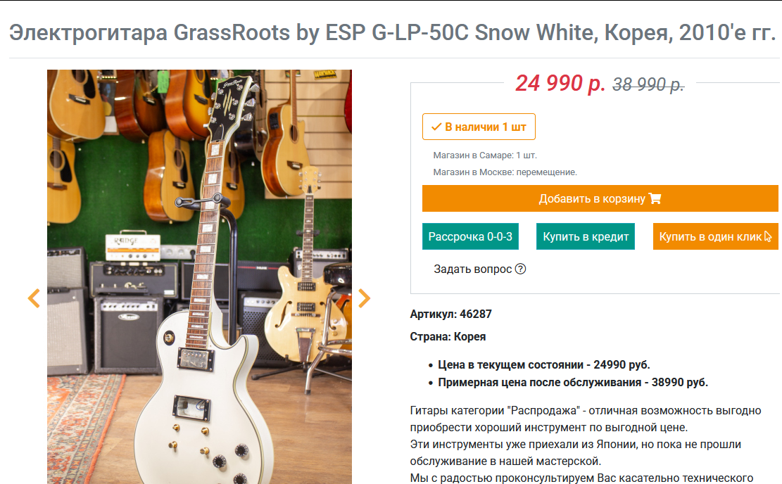 Продаю, потому что в квартире уже места нет от гитар и кейсов. Конкретно эту купил, на панике, что деньги пропадут. Доставал из кейса пару-тройку раз в итоге, потому что уже другой лес пол есть, а эта вся такая новая и красивая, что жалко было коцать. В итоге хранилась в кейсе по косметике идеальная, как с завода.