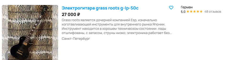 >>1101823 Их всего три на авито Одна лежит в баре гитар, где цены х2 от адекватных всегда Другая лежит у перекупа И третья вот за 27 целая от частника Вопросы?