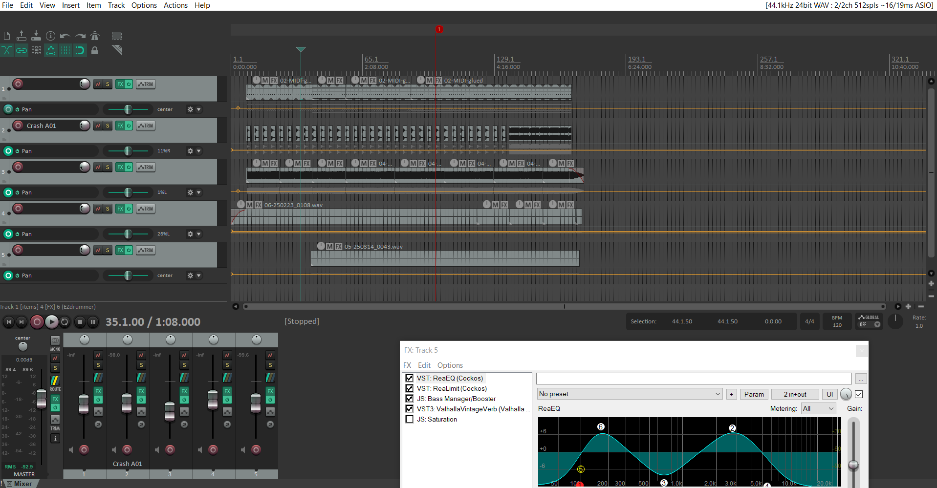 >>1102386 >>без какой либо идеи Да, идея довольно быстро пропала, говорю же я его перелопачивал потому что сидел и не всегда выкупал чё где находится, в какой-то момент повесил на мастер фильтр проверить, ещё и какой, с огромной шишкой на высоких и ЗАБЫЛ, и пол производства делал с фильром сверху, когда заметил и убрал, то ясное дело это такая каша ебаная была. БПМ ещё в полтора раза скосил потому что не нравилось, но во что это звуки превратило... Много где короче сидел и просто, блять, кнопки не те нажимал, а потом сидишь как дурак переслушиваешь по 20 раз не по художественной надобности, а потому что пытаешься понять что ты там случайно удалил или добавил. И это ж ещё и идея такая себе, что всё усложняет. Изначально же была просто аккордовая импровизация, чтобы слишком время не тянуть. Буквально пытаюсь дохлую лошадь заставить побежать.