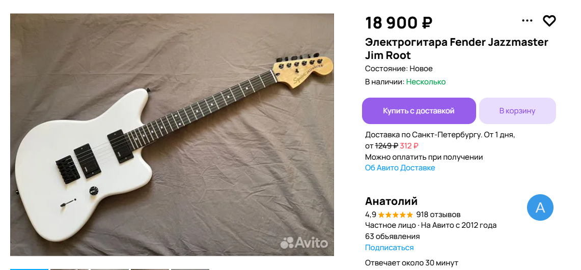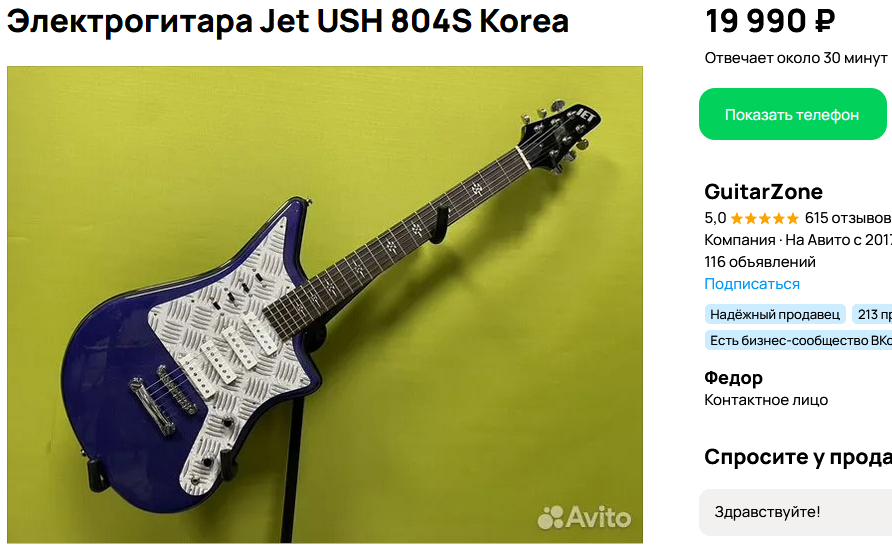 >>1106301 Посмотрел, понял откуда берет ассортимент охуевший барыга из Уфы, засравший весь авито поддельными фендерами по конским ценникам. Ну ладно хоть тут цена смешная, вся гитара как один бриджевый звукосниматель на телекастер. Можешь брать в принципе для украшения интерьера, если играть не планируешь.