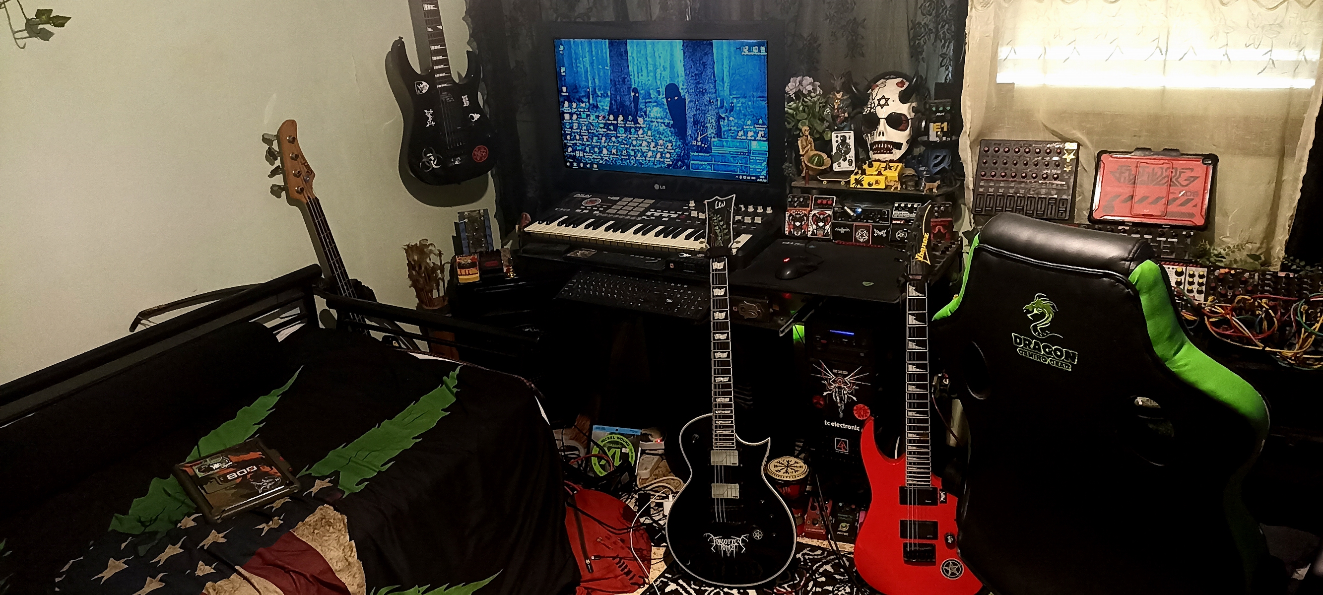 Четыре моих крайних трека, второй переделываю гитары по тиху, но из-за погоды временно не при делах. На пике пожалуй моё одно из лучших вложение за последние 4 года, на втором басуха и гитара с пониженным строем настроена в 432 Hz просто что-бы играть для себя.