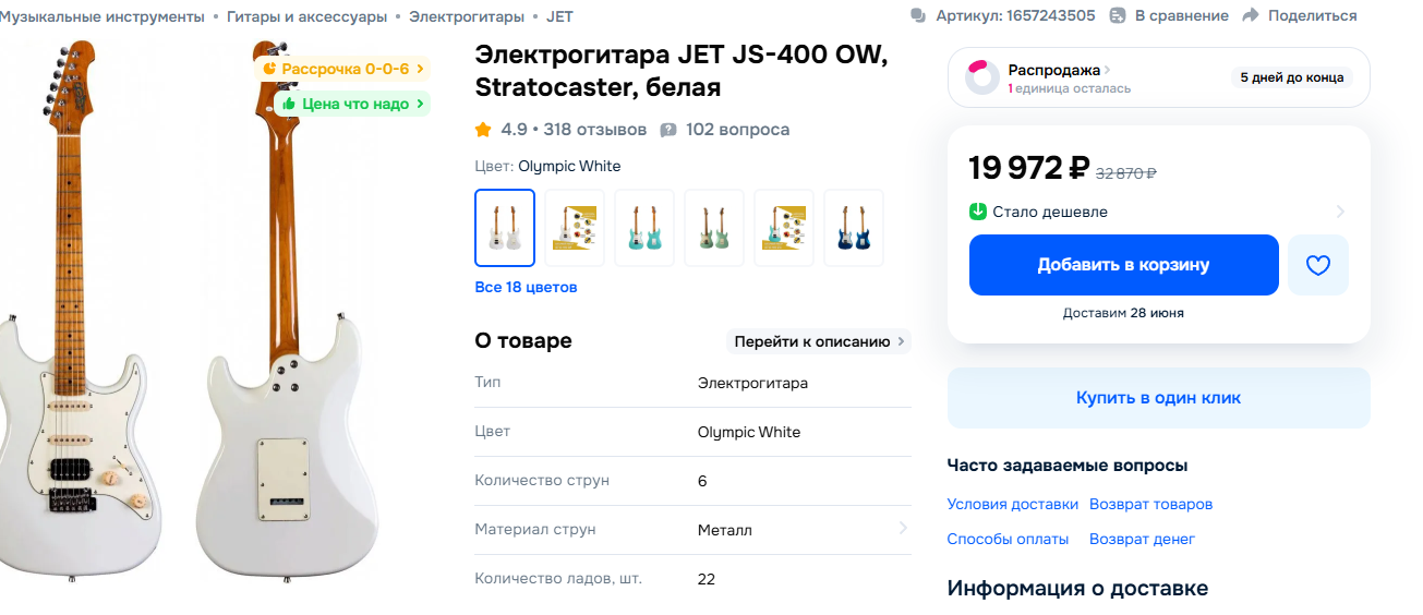 >>1113964 До начала сво, когда ещё можно было заказывать с томана напрямую, у них действовал запрет на доставку продукции фирмы Фендер в Россию. Этот запрет ввела сама Фендер, чтоб продавать у нас свои гитары официально по своим ценам. Фендер плеер 1 стоил официально 90к, и это было 3 года назад. Так что 100к в 2к25 - это норма.