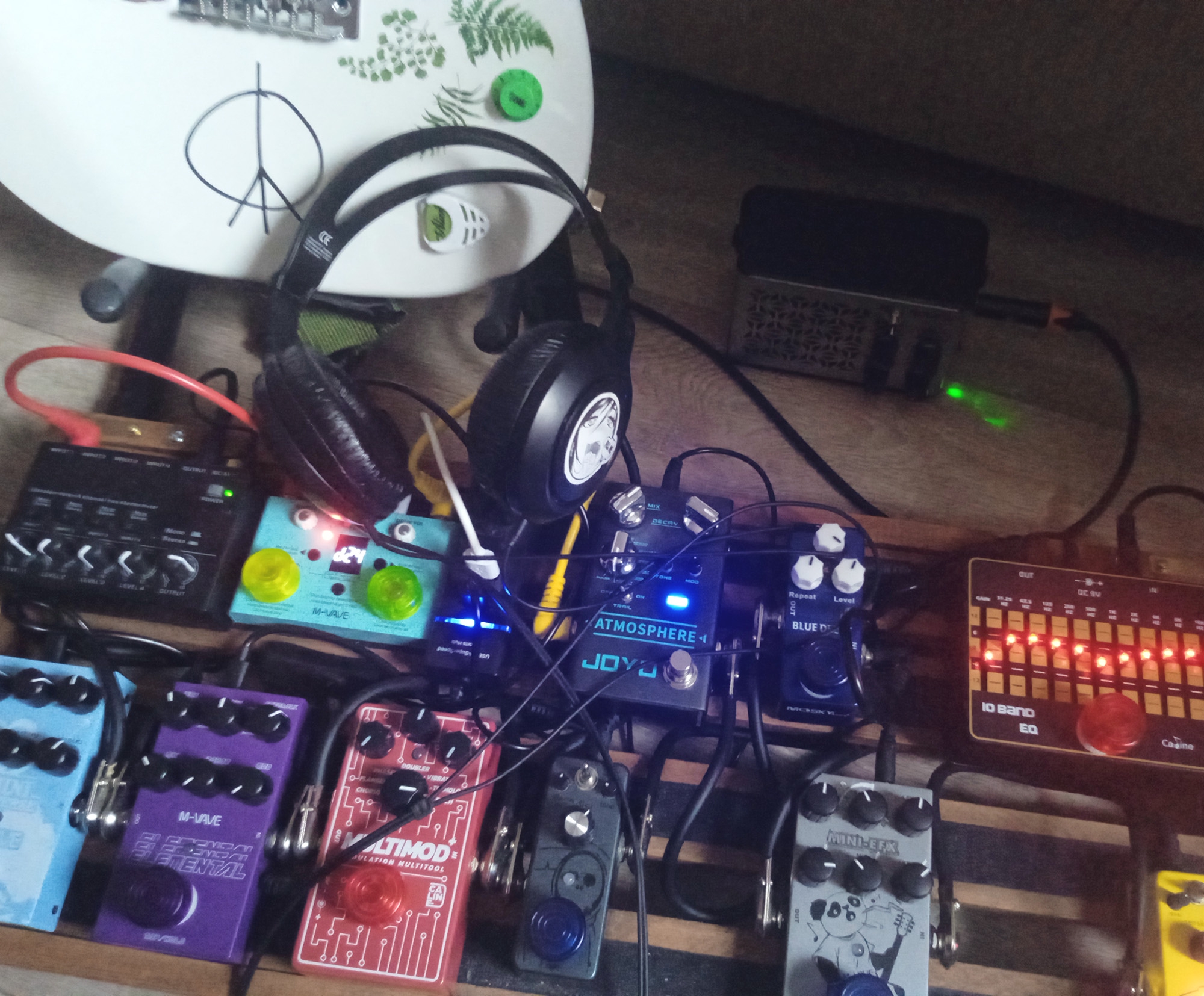А так практически дособрал себе сетап, едет атмосфера, вав джоджо, и маленький фузз. С расположением еще поиграюсь, надо дилей один наверное перекинуть после драммашины, чтобы мылить барабаны, может и ревербератор.