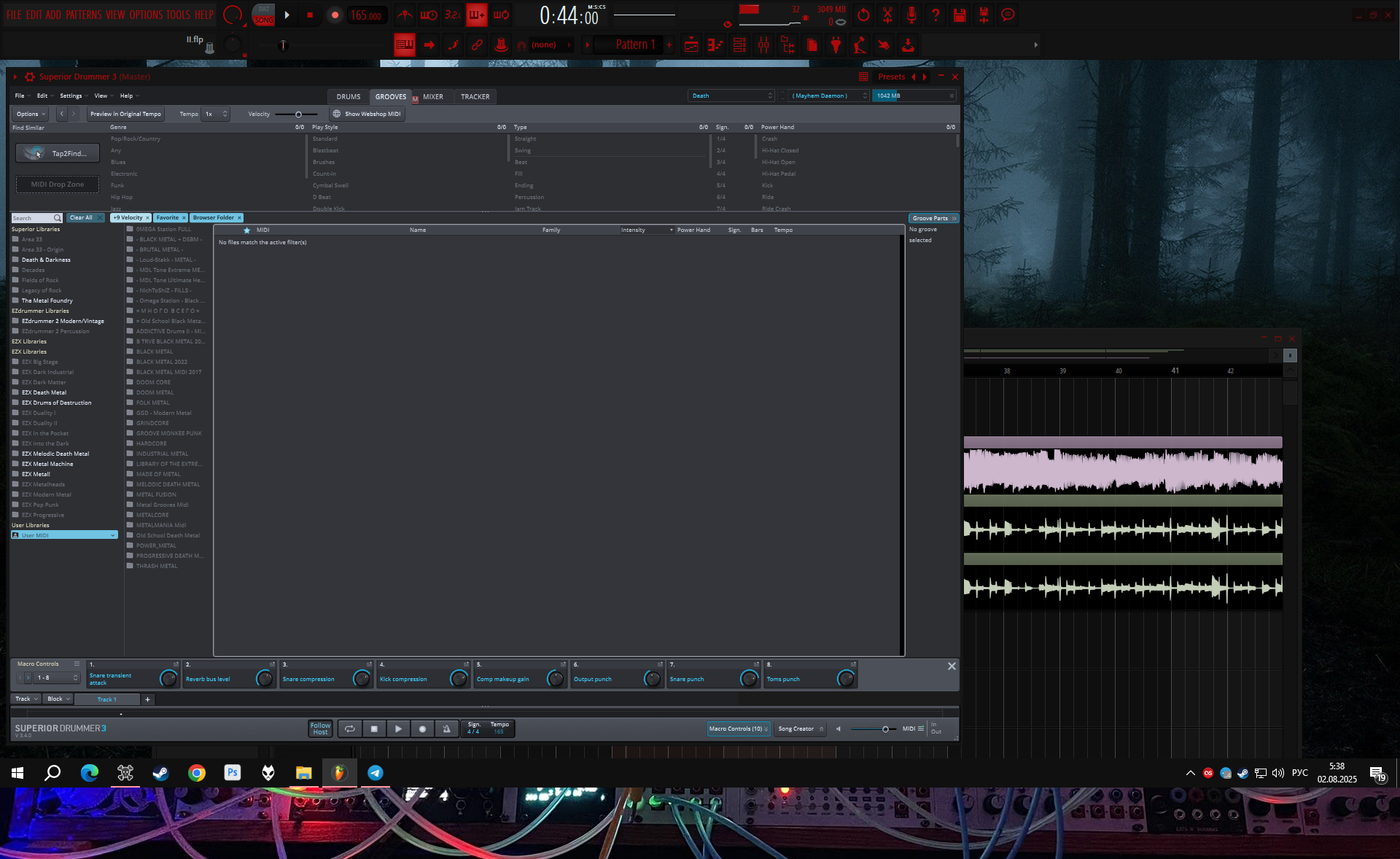 Короче Супериор даже в таком сыром виде номуль, хотя обычно делаю лееринг Контактовской библиотекой, дело в том что контактовская весит годаздо меньше ну 12гб и поэтому есть ощущение что велосити чётче. Хотя на самом деле просто меньше вариаций позиционирования и прочих донкостей, но при наложении на Супериор стоит велосити пошароёбить в Контакте и прям ваще норм становится. Особенно понравилась вот эта библа, прям для блек метала словно - Chaos Tones - Deviant Drums 1.0.2