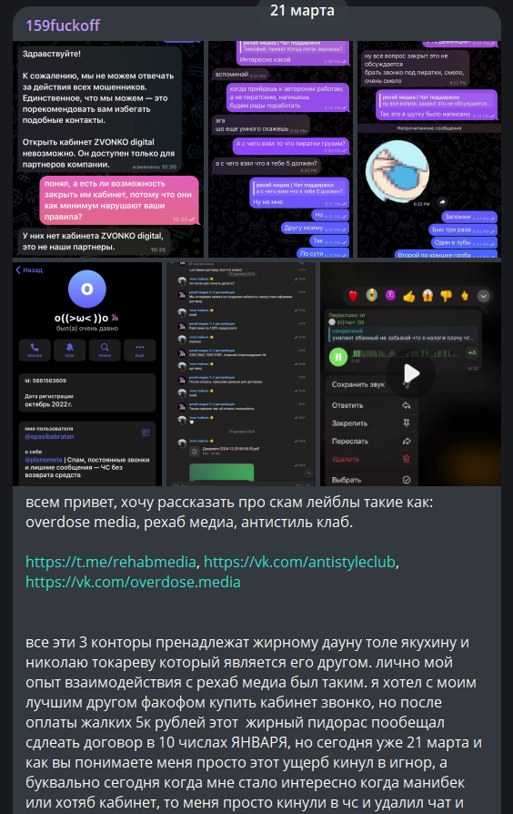 >>1129525 Несмотря на то что все биты я написал сам, официально залить на площадки так и не удалось, хоть и попробовал штук 15. Площадки выступили коалицией против Мухоморас, создав союз. Во главе союза стоит агент дистрибьютора ZVONKO под именем Никита Филимонов, чья настоящая фамилия Пидормонов.