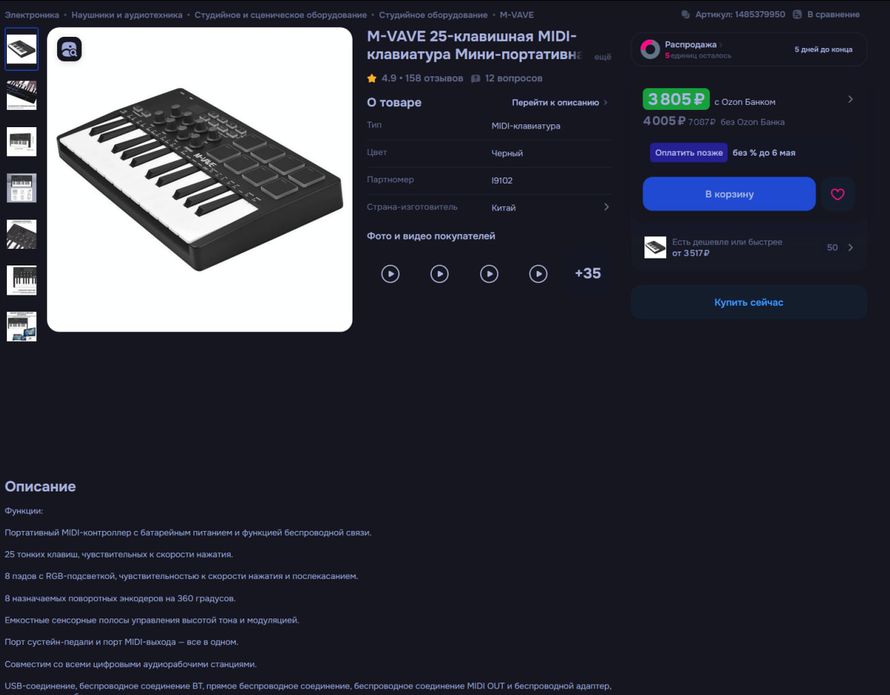 Сап. Подскажите, стоит ли брать пикрил m-vave за 4к? Миди никогда не было, хочу купить потому что без них трудно снимать и набирать ноты, и клавиш пк, которой сейчас пользуюсь для ввода, на 1.5 октавы только. Электронной музыкой не занимался, на данный момент работаю в нотном редакторе, так что не уверен что свистоперделки нужны.