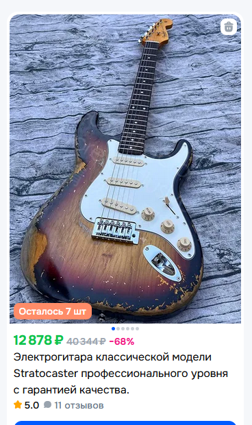 >>1136940 Забыл спросить безвкусных, ведомых анонов, шо мине лестать, а шо не листать. Стратокастер это мастхев, если ты понимаешь в чем соль, для кого то это долгий путь, для кого быстрый, я о пути понимания.