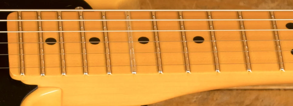 >>1136231 На накладке дотов может вообще не быть. Они расположены на ребре грифа. Или сбоку на накладке, как угодно. Никаких неудобств не возникает, ты же сверху вниз на гитару смотришь, а не не накладку напрямую.