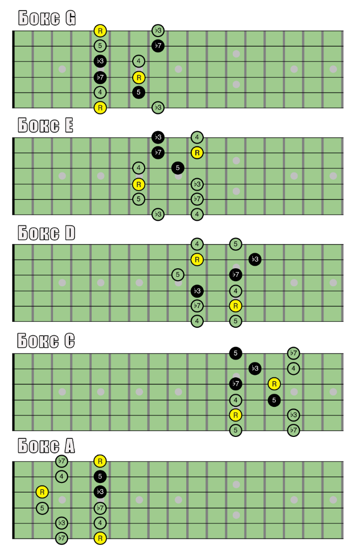Пентатоника 5 боксов, имеем ? имеем. 5 Форм CAGED, имеем ? имеем. Так вот, эти боксы и эти формы принадлежат друг - другу ? Например при форме E, мы пиликаем первый бокс и т.д ?