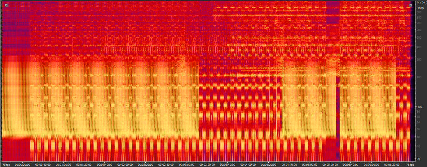 Допустим, что в треке используются только белые клавиши, а интро и аутро сидят в ноте ля (A). Получается, что это ля минор. Пример на пикриле 1 - типичная спектрограмма такого трека в логарифмической шкале. Отлично видны все встречающиеся ноты (главное - не запутаться в овертонах). Очень хорошо виден бас. Это - просто пример того, о чем я говорил про интро и аутро, где путешествия по аккордам и по мелодии успокаиваются и трек оседает в родной тонике.