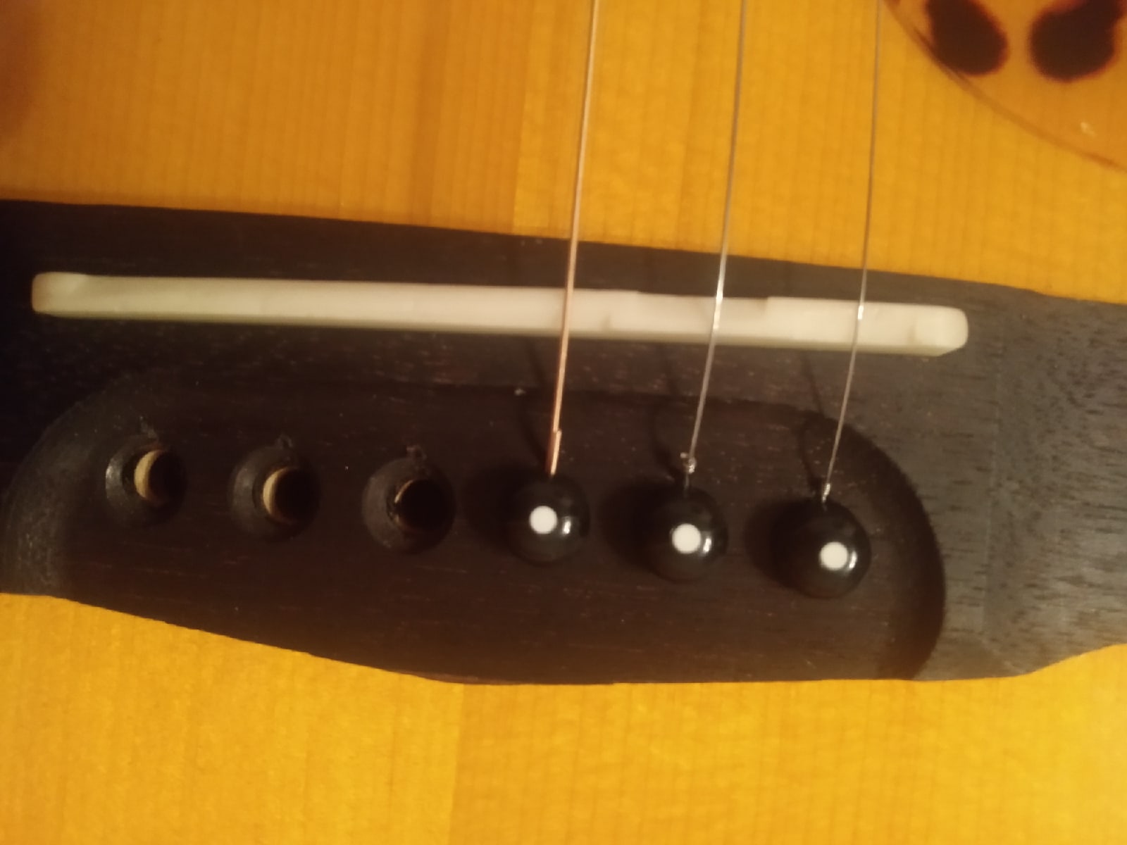 Всем доброго времени суток, решил поменять струны на акустике. До этого полгода стояли из магазина, но вот беда, первая струна дребезжит об порожек и очень низко относительно другиг струн. Может кто подсказать в чем проблема?