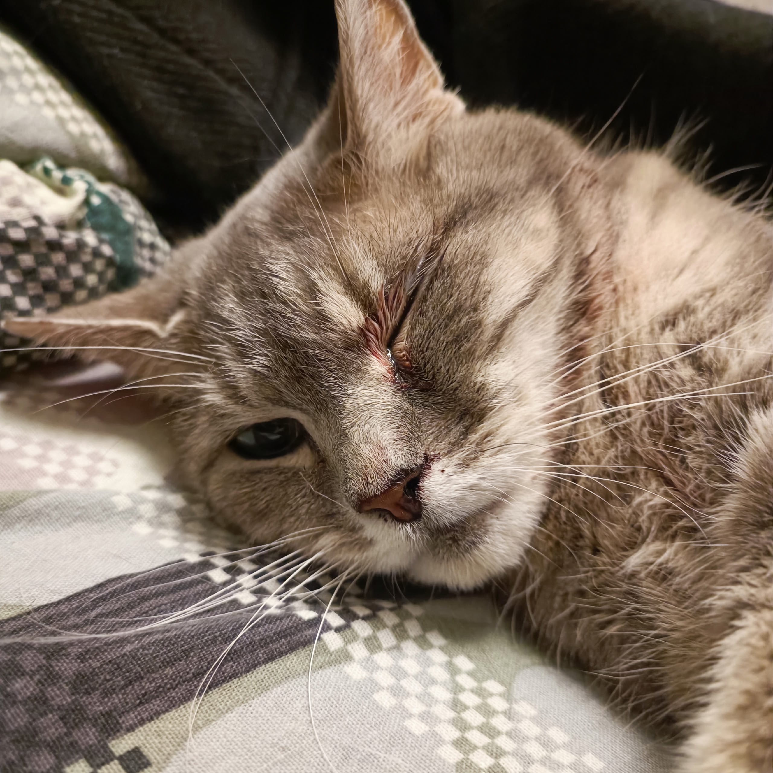 предисловие, моей кошке под 15 лет, живу с алкоголиком соседом (отцом), недавно я уехал на пару дней в соседний город к девушке, вернулся, и обнаружил кошку обосанную, с гематомой (возможно), заплывший глаз, нос, но так же есть второй вариант, раскрытый плотниками гипсокартон потому что у пизды старой сверху в очередной раз что-то не работает, в этот раз полотенцесушитель, в доме обитали раньше крысы, знаю точно, по стенкам ползали, слышал их, 2 варианта, мой алкоголик сосед пизданул её с ноги по морде, она дала отпор ему, на передних лапах были следы крови, укусов на теле кошки я не обнаружил, но обнаружил ноготь у соседа кровавый, царапины мелкие на руках, некоторые на ногах, но с его слов "чешутся ноги пиздец", приехал, дверь в комнату наглухо закрыта, у кошки туалет на кухне и еда и вода. Второй варик это борьба с крысой, но ни помёта я не увидел, ни мёртвой крысы, маловероятный. по мере треда могу давать комментарии уточняющие