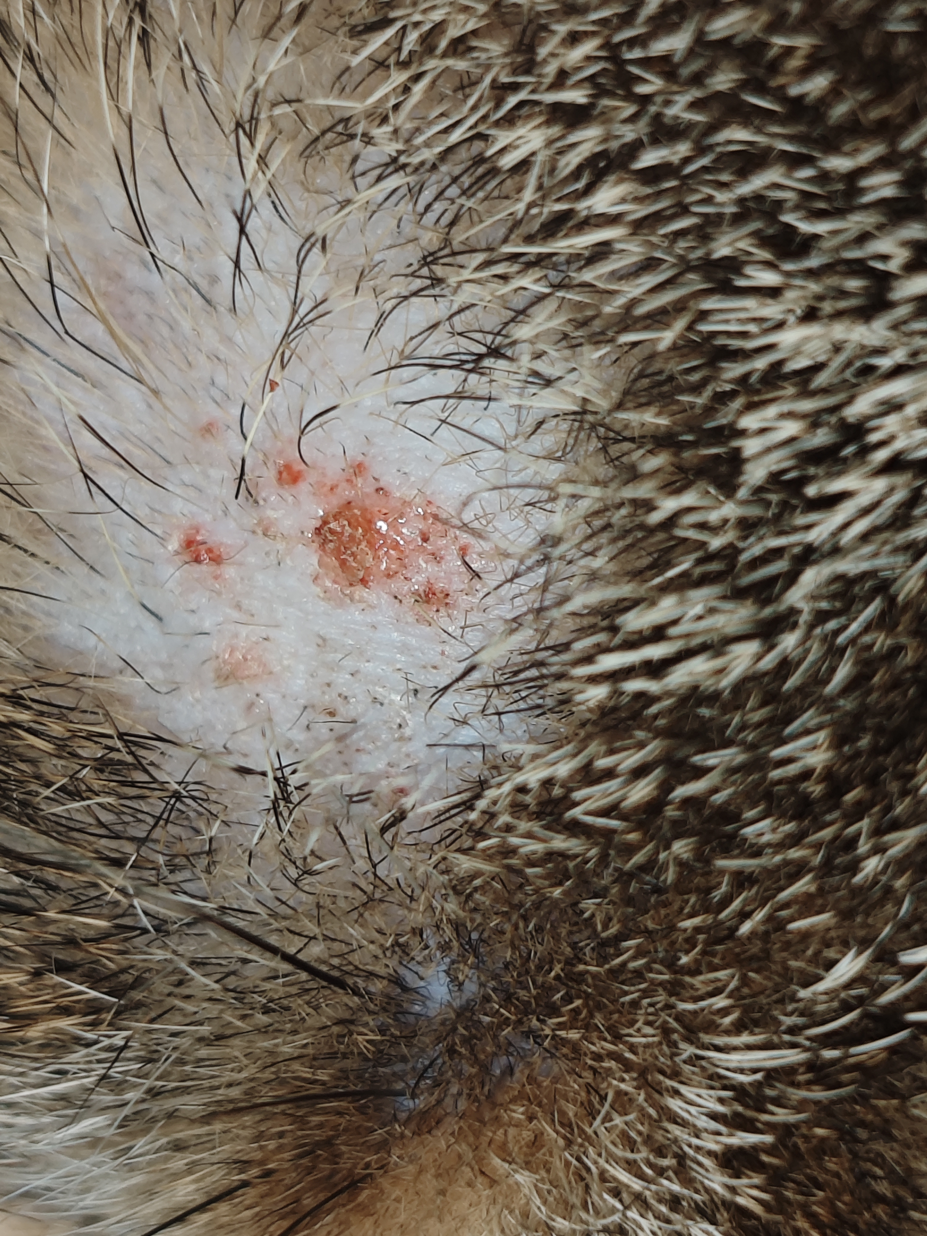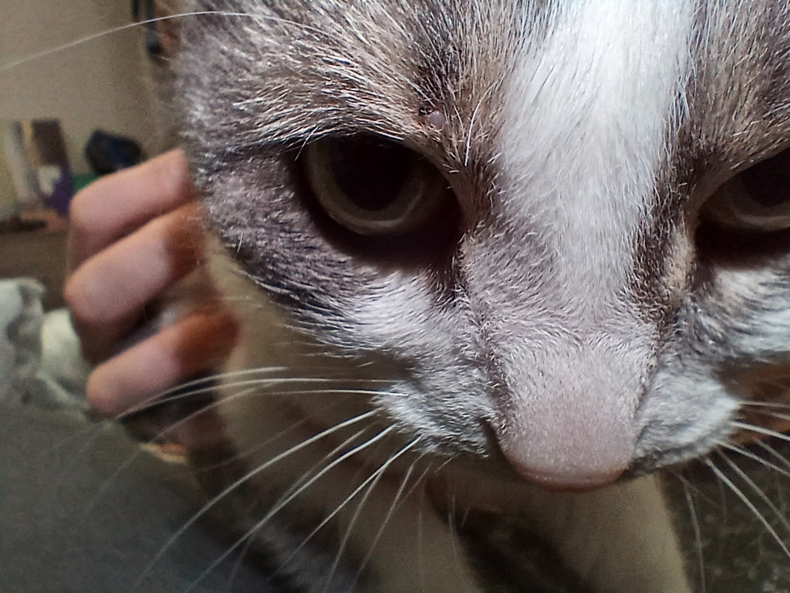 Всем привет. Подскажите, плз, что за нарост может быть у котейки? Появился зимой, поэтому вряд ли клещ, ну и не похож. В размерах и цвете за полгода не изменился. Цвет сероватый. Кошка домашняя, на улице не бывает. У ветеринара тоже не бываем. Сегодня чесал ей башку и случайно содрал немного, появилось чуть крови, но кошка, вроде, никак не отреагировала.