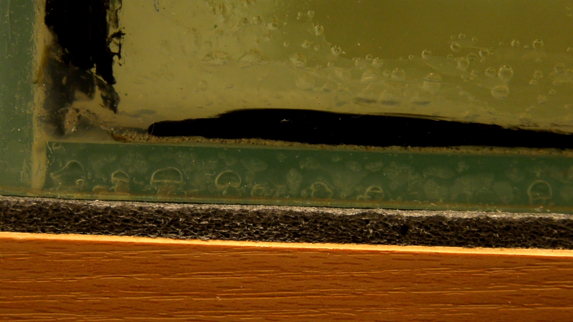 Стоит ли беспокоиться об этих пузыриках в местах склейки стёкол в аквариуме? Аквариуму уже 11 лет, объём 200 литров, недавно решил на всякий случай пройтись внутри и снаружи герметиком, но я не помню всегда ли были там эти пузыри или появились со временем, пиздец у меня от них тряска, будто стёкла начинают расходиться. У вас есть такое? Или мб в треде есть склейщики аквариумов, которые чётко ответят стоит ли из-за этого париться. Герметиком я прошёлся основательно внутри и снаружи, выдавил весь тюбик, но меня всё равно пиздец трясёт. (на чёрное и на общую всратость нанесения герметика внимание не обращаем, сначала думал заклеить чёрным герметиком, но решил, что выйдет хуйня, на красоту в целом пох, аквариум для черепахи, она всё равно всё разъебёт и перевернёт).
