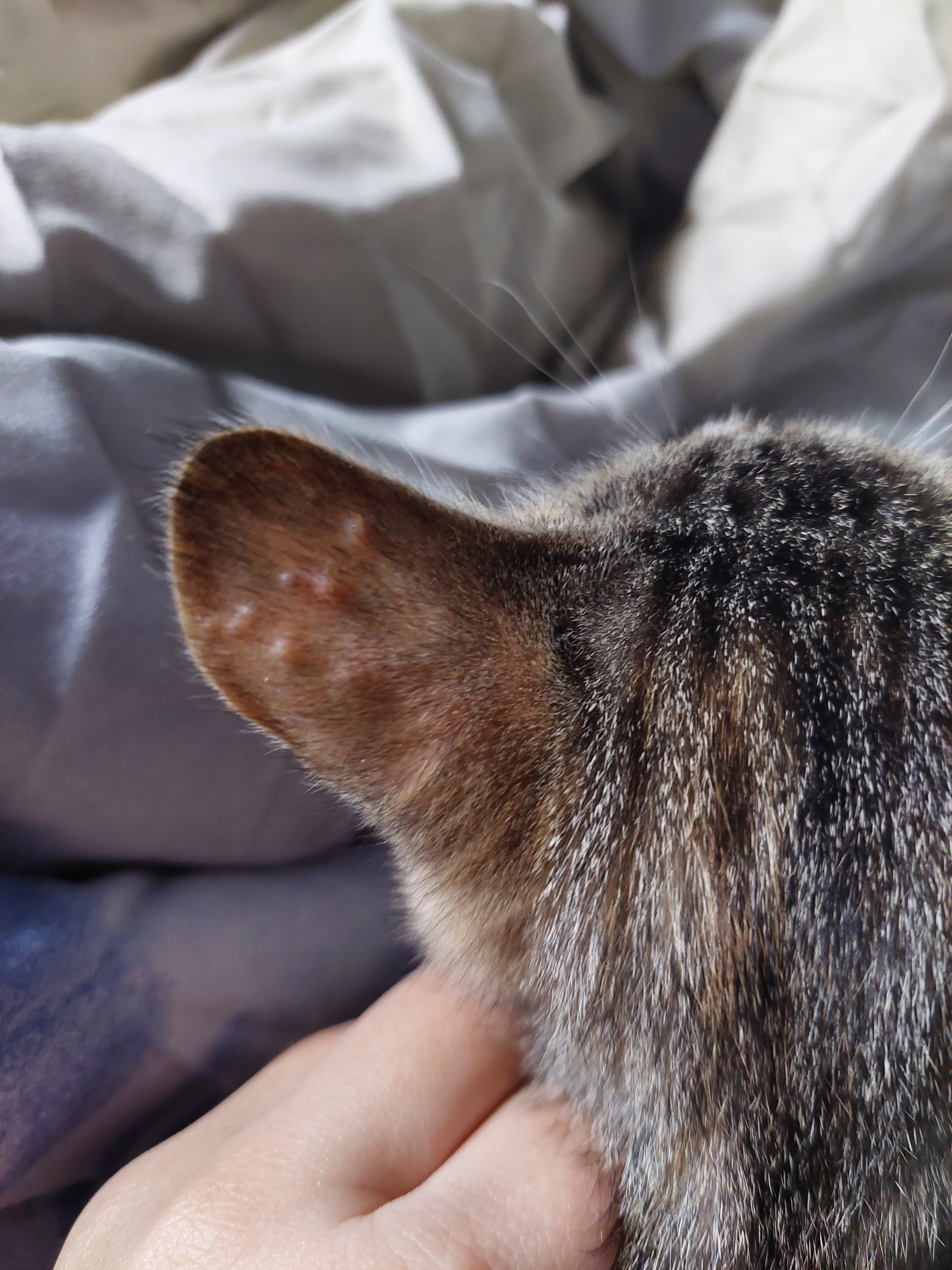 Спасите. Не понимаю, что это, котенку 3 месяца. Второе ушко полностью чистое. У этого уха внутри все хорошо, нежно-розовое, никаких выделений и запаха. Чешет как обычно, редко. На ощупь какие-то твёрдые комочки, ещё 2 дня назад было полностью чистое ухо без этого. Да и вчера не было, я бы заметила.