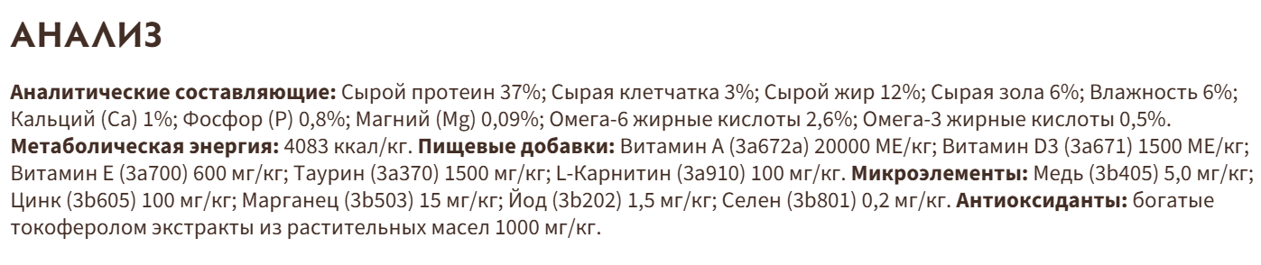 4. ✅ Нейтральные/положительные компоненты: * Животный жир: Энергия, но источник не указан. * Лососевый жир: Плюс (источник Омега-3). * **Дрожжи, витамины, минералы:** Стандартно для любого корма.