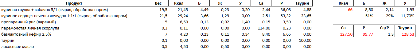 >>223815 Гугл + чатГПТ + Дипсик. >>223852 Ну как, по шагам. Начал с БЖУ при натуральном питании и составил перечень разрешенных продуктов. Потом нашел расчет калоража исходя из возраста, веса и активности. Далее по пропорции к нему вычислил кальций, фосфор и таурин. Перешел к составлению рациона. Определился с добавками и витаминами.