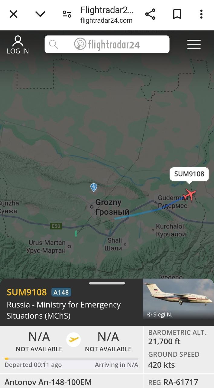 Второй борт принадлежит МЧС России. Он наоборот вылетел из Грозного и летит хуй знает куда, но держит курс будто на Москву