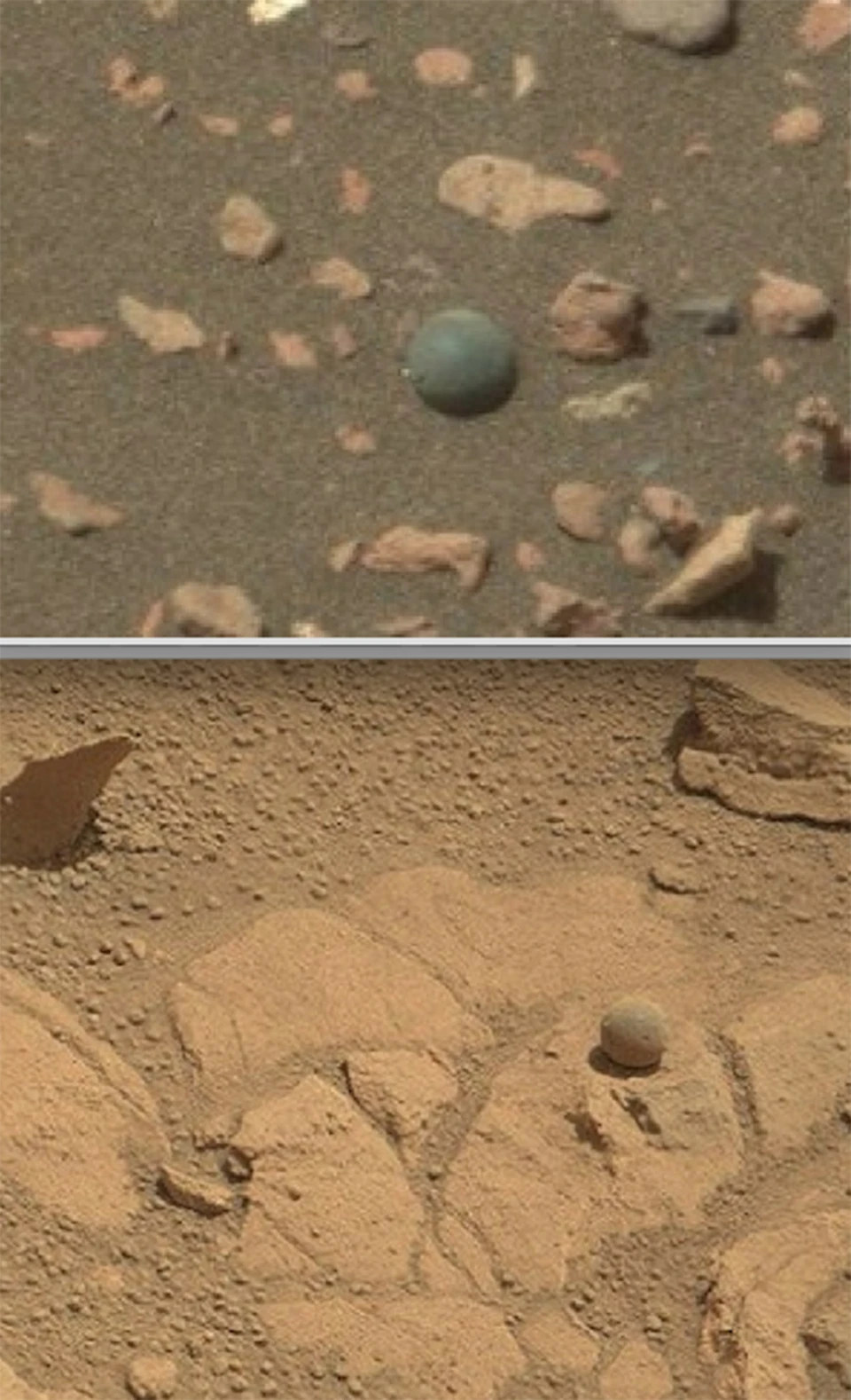 Кстати, странные объекты попадаются «Любопытству» не в первый раз. Он фотографировал, к примеру, нечто похожее на металлическую ручку от сейфа, вертикально торчащий цилиндр, шары, похожие на пушечные ядра.
