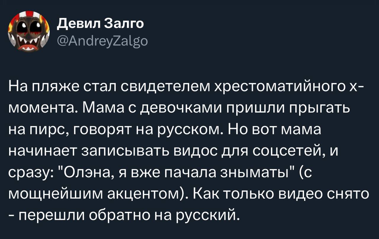Добавлю еще что благодаря политике совков было модно быть нацменами и жить в республиках, поэтому дети в смешанных браках, даже в перестроечных временах выбирали "необычную" национальность, а "русский" считалось обычной, немодной национальностью. У меня так родственники записались многие в редкую национальность, просто чтоб необычно смотрелось, модно так было, хотя по факту там от этой национальности только фамилия и всё. Это примерно как сейчас многие у себя еврейские корни ищут, типа это модно и может какой-то профит принести, даже если корни придуманные это возвышает их обладателя над другими, по крайней мере в его личном представлении. Я такое много раз встречал, типа челы у которых еврейская фамилия от прадеда вдруг начинают косплеить евреев, хотя они евреи на 10-30% и по отцовской линии (еврейство по матери передаётся по канону) по тем же мотивам как это в совке было. Фамилия даже не обязательно должна еврейской быть, литералли знаю чела с фамилией а-ля Иванов, который рассказывает что его мамка еврейка и он типа тоже еврей знаю их семью хорошо и слабо верю в то что там что-то еврейское есть, дома у матери стоят иконы, обычная тётка Даже знаю казашку, которая косит под еврейку, хотя она 100% казашка, но дома у них миноры стоят, лол. Уверен что на Украине так до сих пор происходит, куча русских по сути людей вписали себя в украинцы только благодаря государственной политике этноцида, страха быть другим, страха перед националистами, пропаганде. У вас там такой хряк есть - Алексей Данилов, нацик, размовляет на мове, казалось бы - типичный хохлонацист, но вот что интересно - его родная мать, которую он старую бросил в ДНР - говорит что она русская, из России, батя его видимо тоже (суди по фамилии). А сынок хохлом оказался. Министр обороны ваш такой же, да полно людей таких. Двачер и хохлонацист Вольнов - тоже этнически русский, родом из Архангшельска, родаки переехали на Донбасс, но считает себя почему-то хохлом. Вы за все эти преступления, за весь этот сеський этноцид сейчас и отвечаете, если ты не понял, за эту гнусную нацистскую политику. Видео про мать Данилова: https://www.youtube.com/watch?v=wSJLgJM7REM