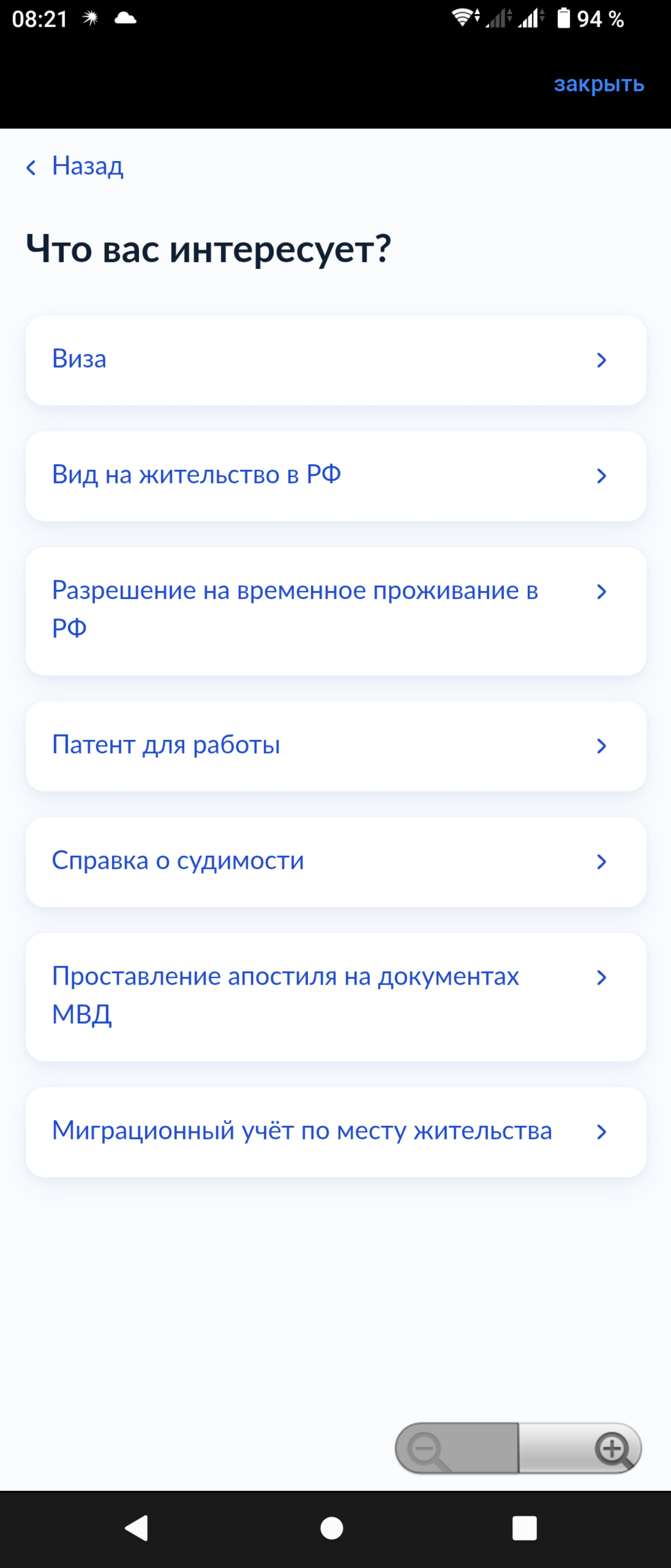 Собственно вот список куда можно записываться, а если выбирать МВД на на новых территориях, то там нет выбора, а просто написано для подачи документов когда выбираешь сам регион получения услуги.