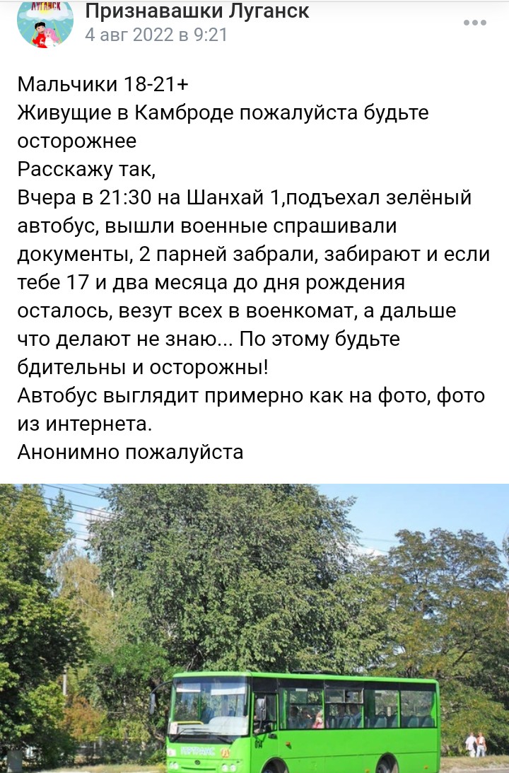 Вчера был в Краснодоне, винтилова не наблюдал. На автовокзалах обоих тихо, в городах тихо. Был в районе кв.Лютикова и центрального Рынка в Краснодоне, в Луганске был в центре и тоже тишина. Знатно проиграл с заявления НМ ЛНР про то что принудительная могилизация "ФЕЙК". Сегодня мой выходной, поэтому попиздую гулять в центр на велике, заодно и разведаю как дела обстоят у нас в Луге.