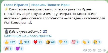 С учетом стоимости перехватчиков ($7.5 млн за PAC-3 и $20 млн за противоракету THAAD) и 169 официально сбитых иранских ракет выходят цифры от $2.5 до $3.2 млрд. И это только три дня войны, причем без учета стоимости перехвата дронов.