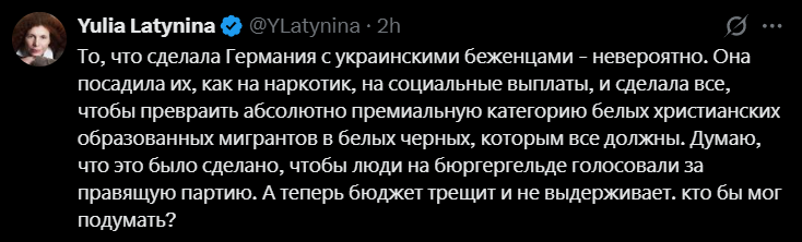 >>1692836 >донецкие хохлы согласно лору РФ это не хохлы, а русские, которых много лет этноцидило украинское нацисткое государство. >>1692839 Лол, так и есть. Забыли как у русских плитку в квартирах клали и обои клеили, конкурируя с узбеками за рабочее место. Это вообще не удивительно, на Украине живёт порода людей с поразительно короткой и гибкой памятью. >>1692842 >А украине поставят план маршалла Смешная мрия, жаль пост удалили, не могу полностью прочитать. Всегда смешно украинские мрии читать. "Хочется, очень хочется" >>1692843 >белые страны о, ариец из господи прости Канады высказался в защиту БЕЛОЙ РАСЫ. Смотри ИРЛ такое не скажи - с работы попрут, иммиграционную визу аннулируют и наложат штраф который пойдет в бюджет, из которого будут выплачивать велферы пакистанским жителям Канады, которых становиться там всё больше и больше >>1692844 >любая другая страна имея под боком соседа уровня украины разъебала бы её ещё в 2014 100%, но конечно при наличия возможности и воли, а возможность и воля разъёбывать другие страны в 2к25 году есть только у США, Израиля и России африканские помойки с гражданскими войнами не в счёт. И то у первых двух эта возможность обоснована наличием значительной иностранной поддержки, и доминированием в информационном поле. Без поддержки США Израиль не вёл бы себя так дерзко. У Китая возможность есть, но нет воли, либо просто выжидают удобный момент. >>1692844 >В общем что бы рашка не делала, всё плохо! Это базовый тейк всей сети западной пропаганды с 91 года. Внешняя пропаганда СССР была расформирована, внешней пропаганды РФ не было, но потом в конце 2000х появилась и весьма слабая, по сравнению с западной (РТ всякое), а западная пропаганда типа Радио Швабодки не прекращала своё вещание со времен Сталина, и только разрасталась как спрут всякими интернет изданиями, косящими в том числе под "независимые СМИ" типа всяких Медуз, "независимых расследователей" типа BellingCat (журналист которых недавно был уличен в попытке вербовки российского пилота для последующей провокации) итд. Сам долгое время это информационное гавно хавал пока не прозрел. >>1692845 >Но вы ему не помешали >>1692843 >своими мохнатыми руками резали русских и изгоняли из домов, а вам было похуй
