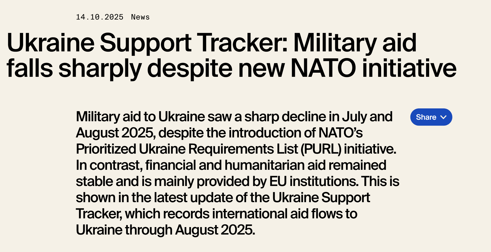 Трекер поддержки Украины: Военная помощь резко сокращается, несмотря на новую инициативу НАТО