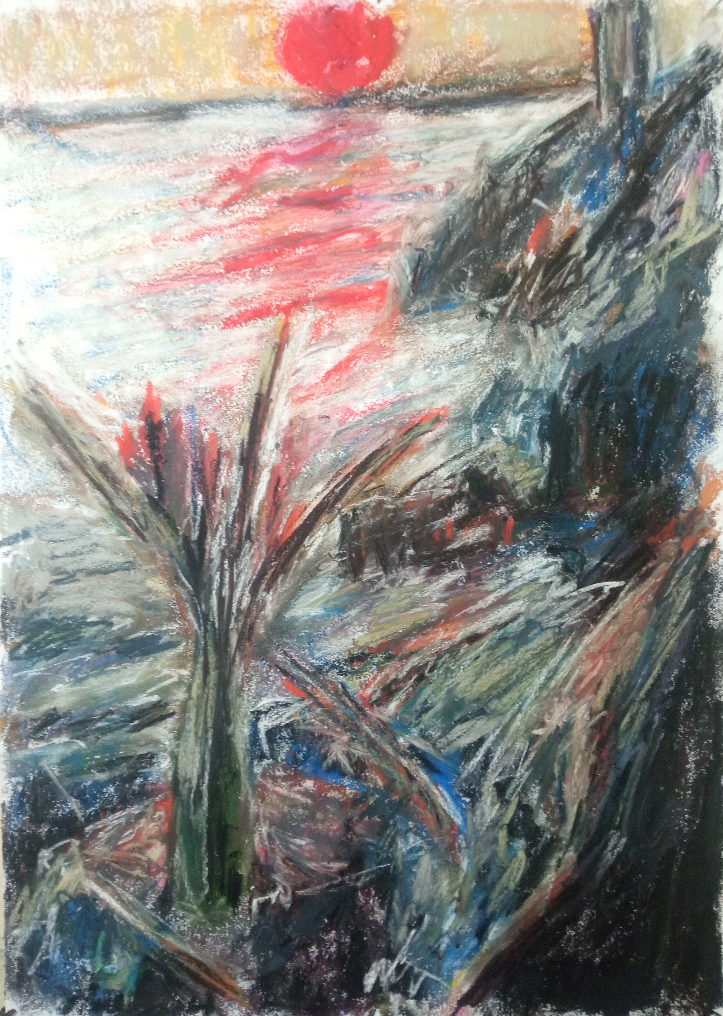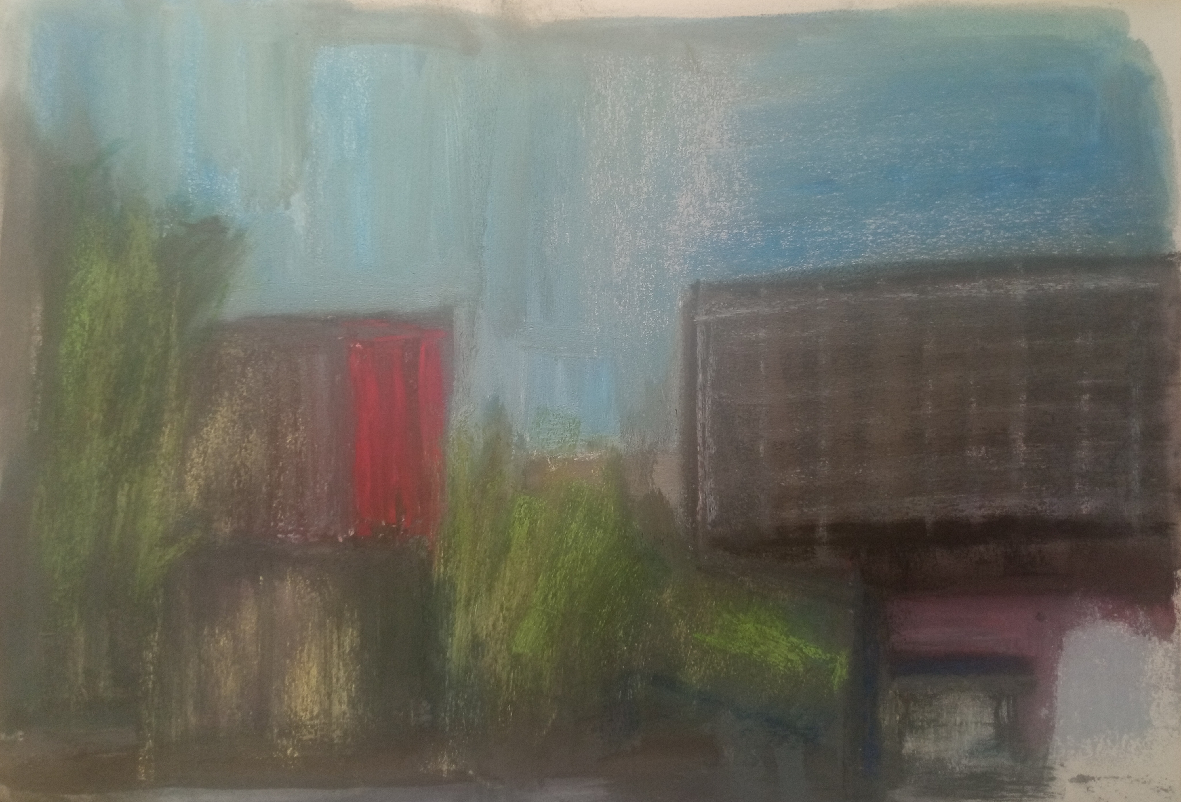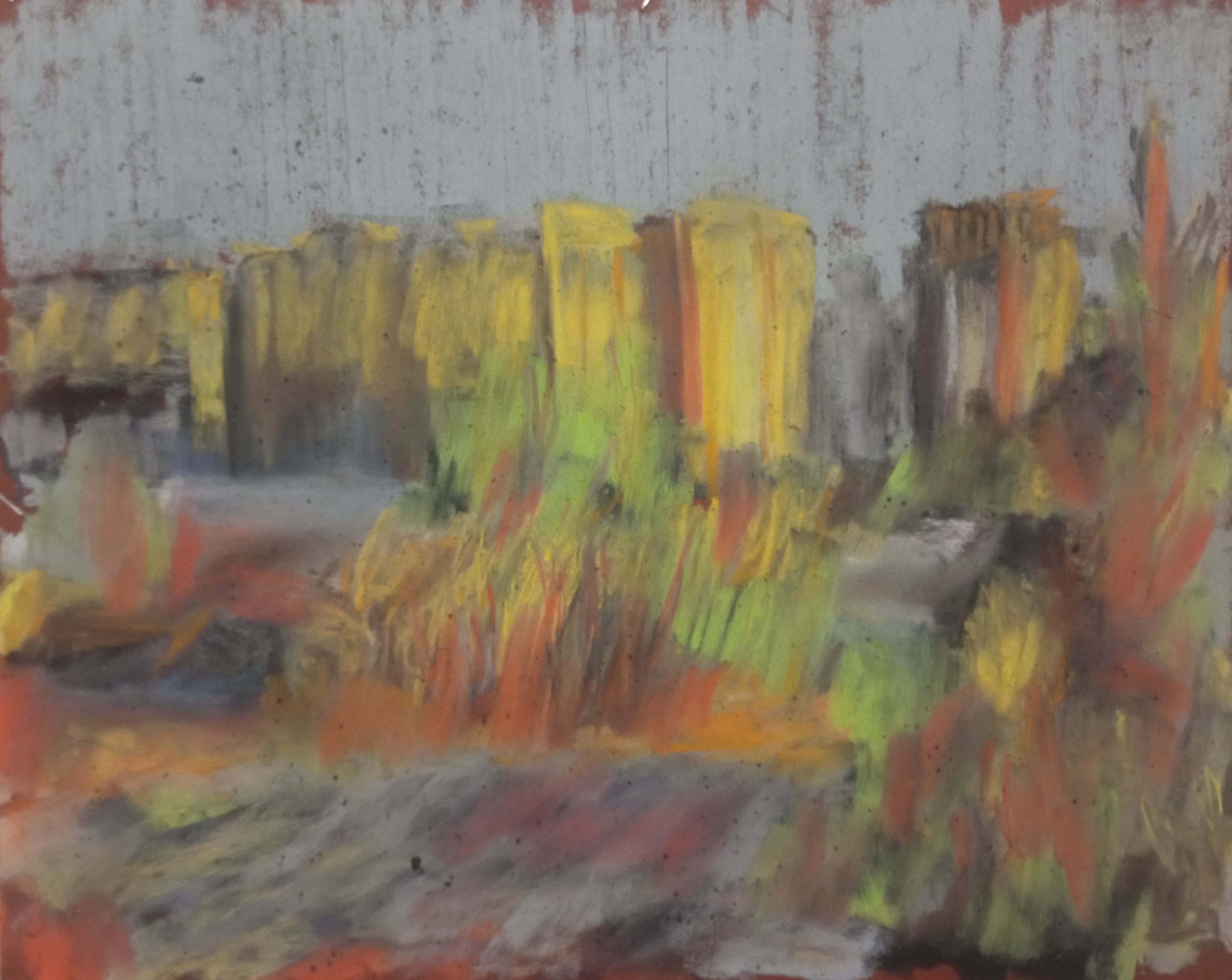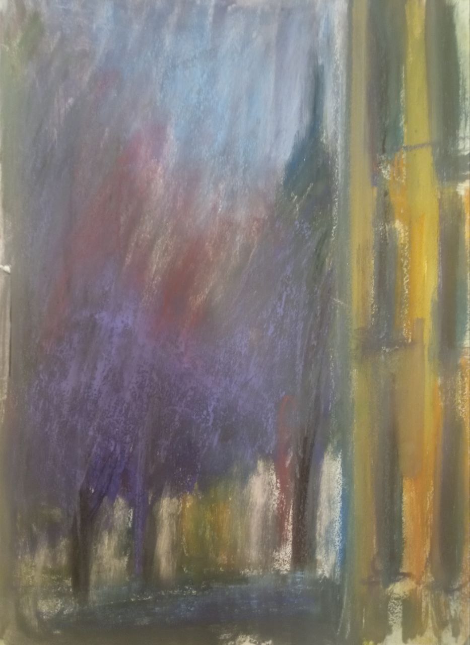 Однако, вспомнив про масляную пастель, вчера я пробовал писать ей по бязи с лаком МСХ. Когда понял, что пастель будет лучше всего для пейзажей, решил заказать переплетный картон и докупить полный набор пастели Сонет.