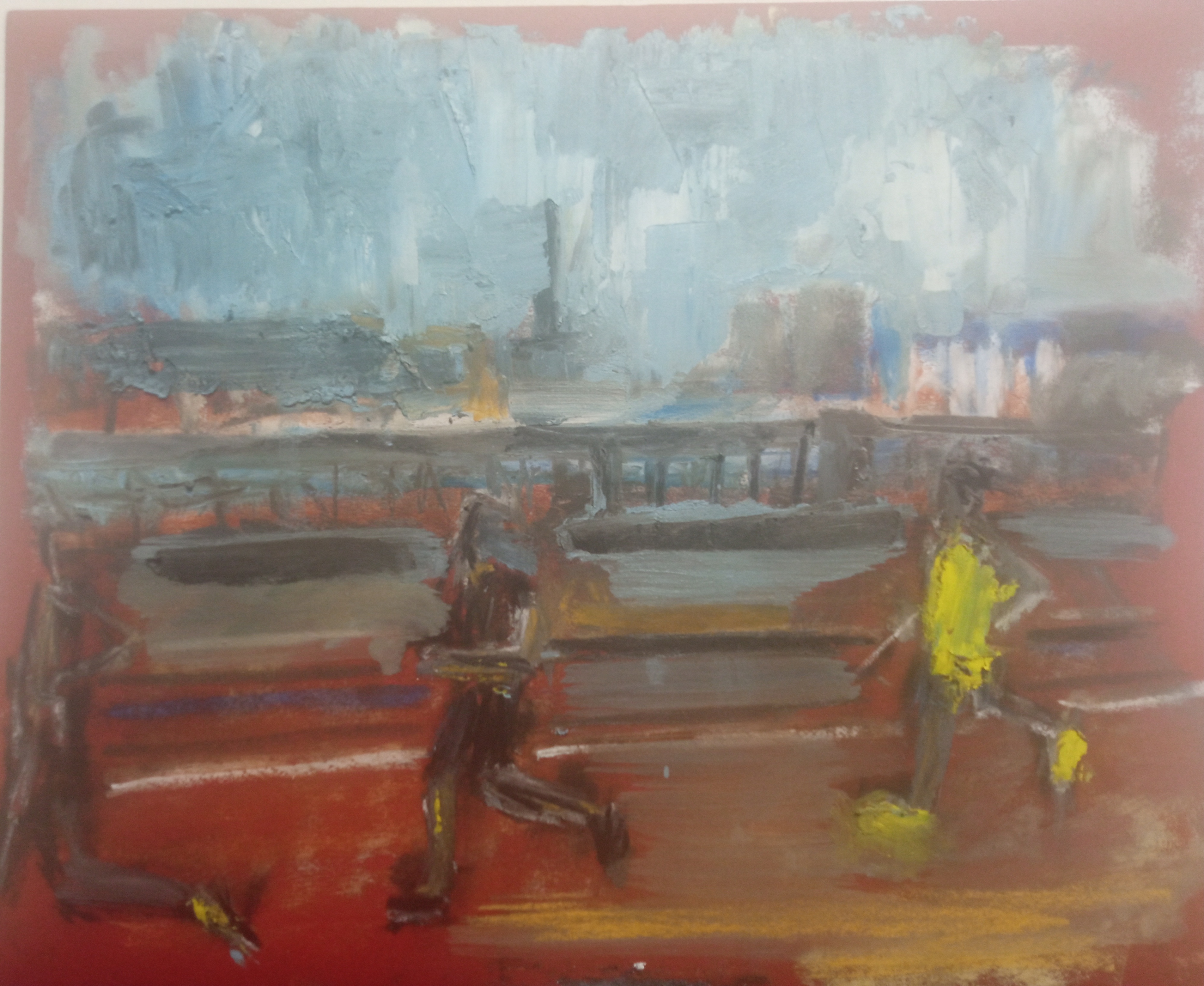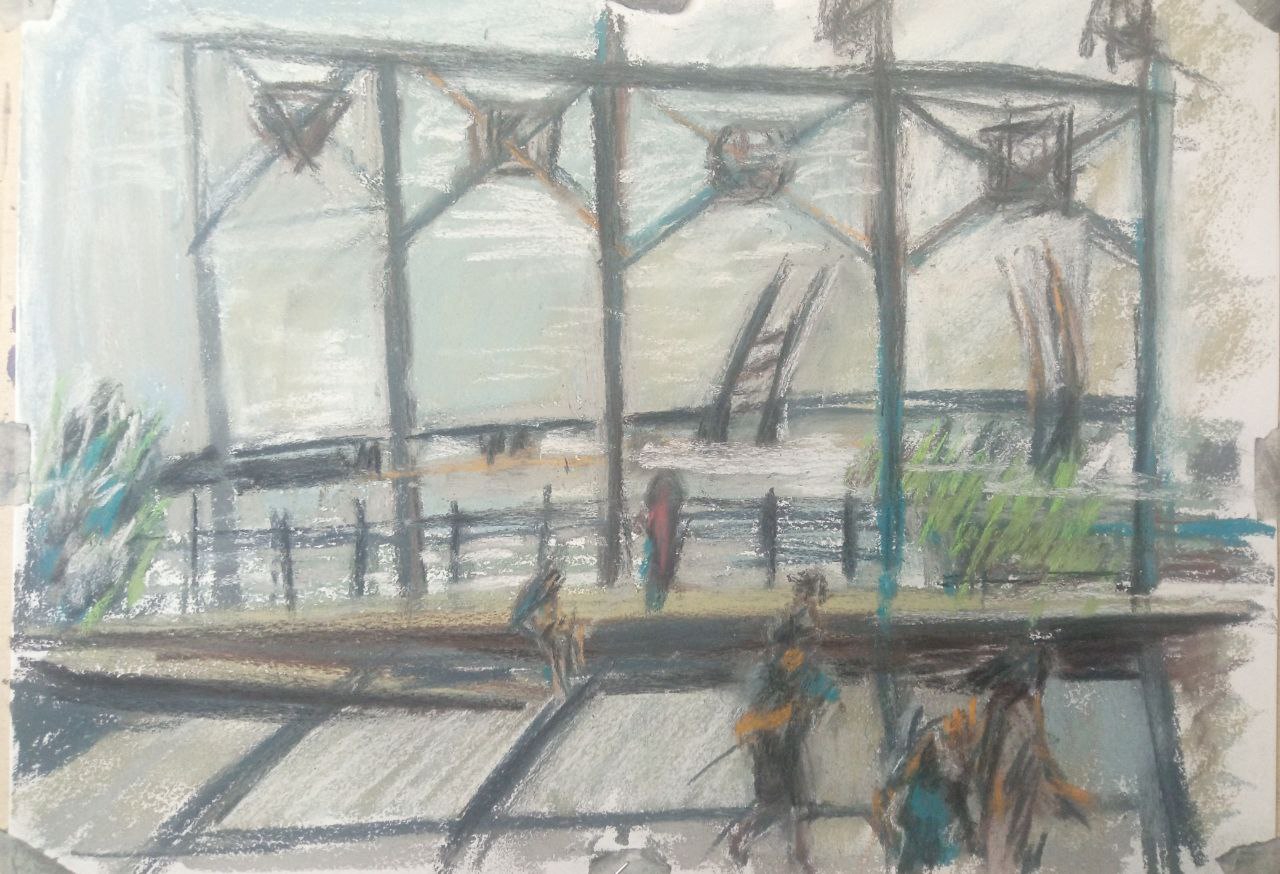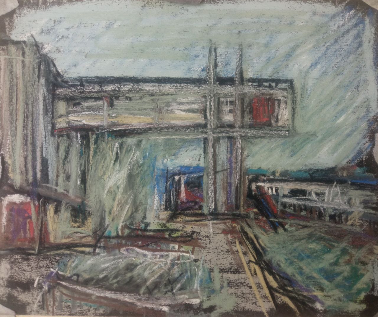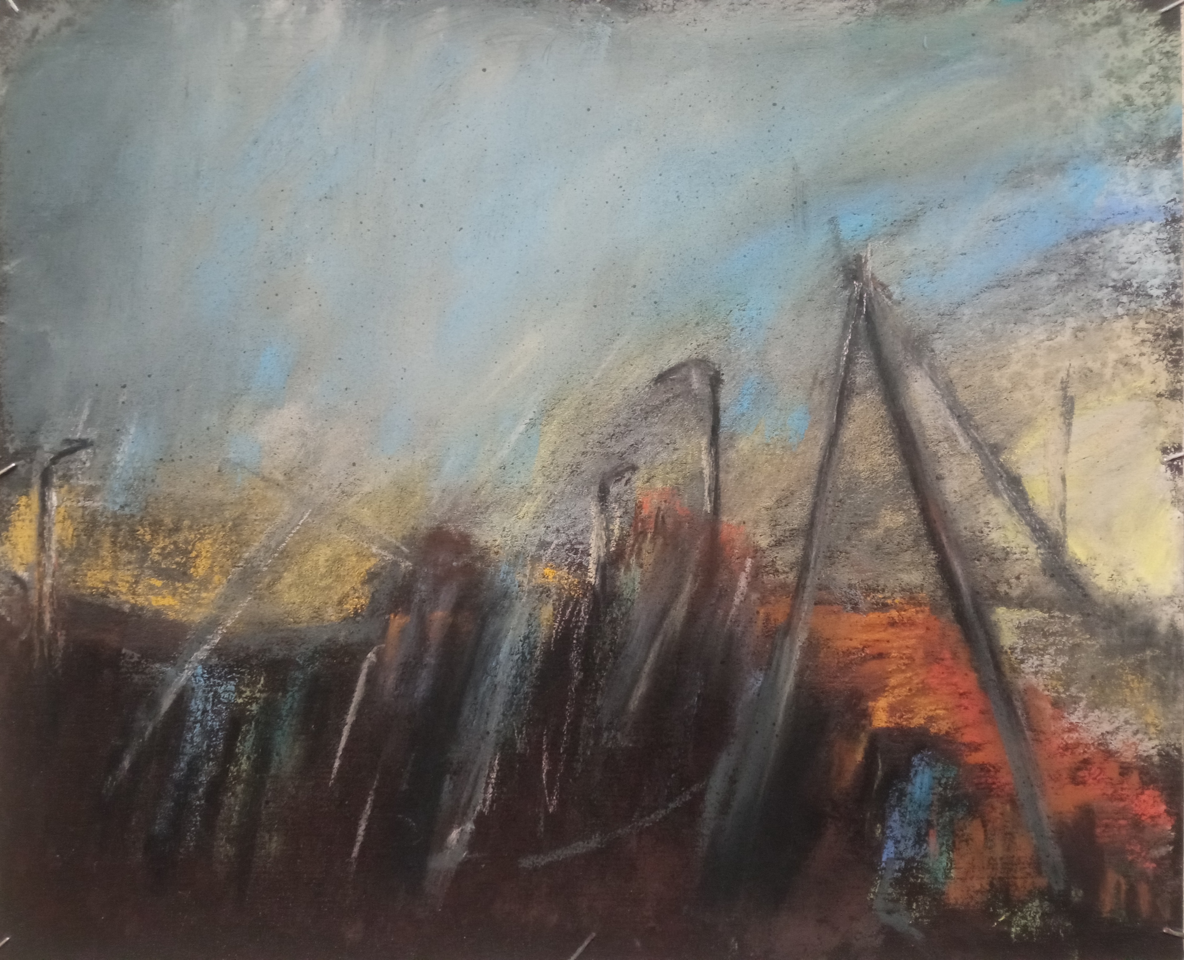 Однако, вспомнив про масляную пастель, вчера я пробовал писать ей по бязи с лаком МСХ. Когда понял, что пастель будет лучше всего для пейзажей, решил заказать переплетный картон и докупить полный набор пастели Сонет.