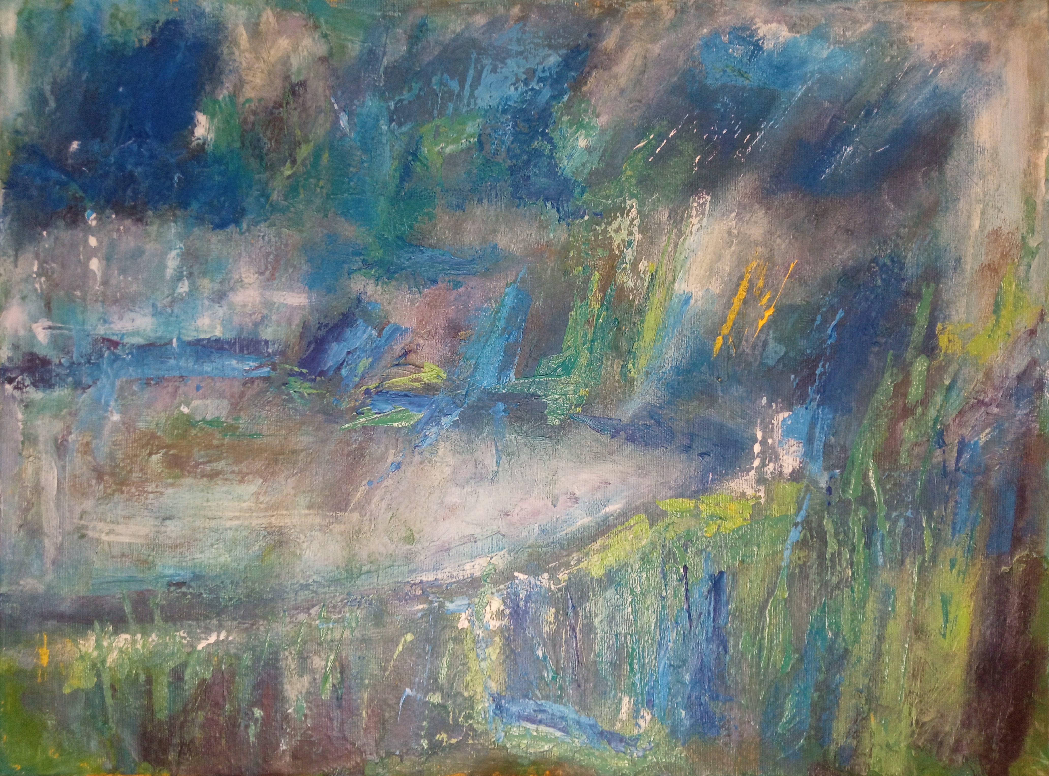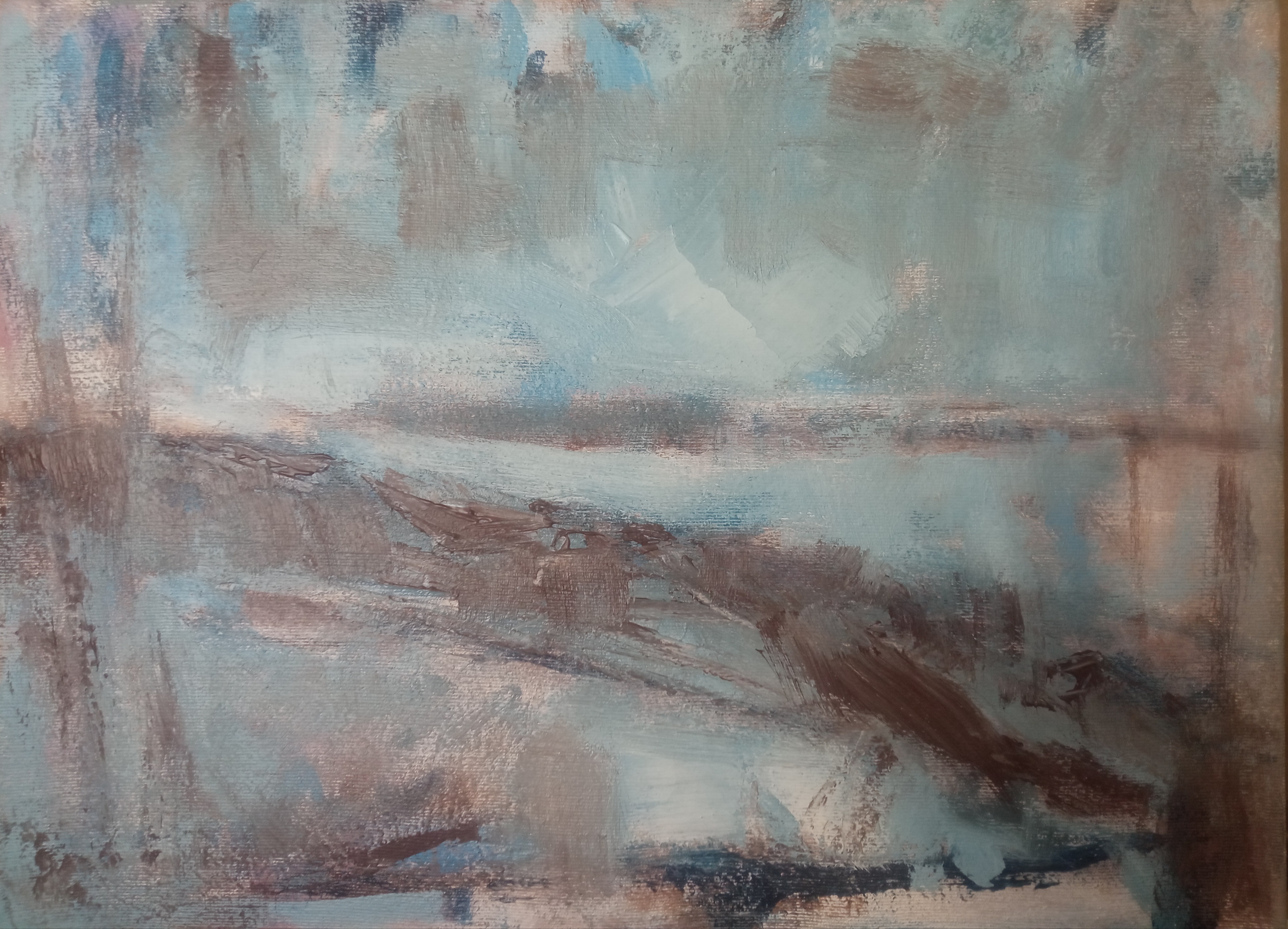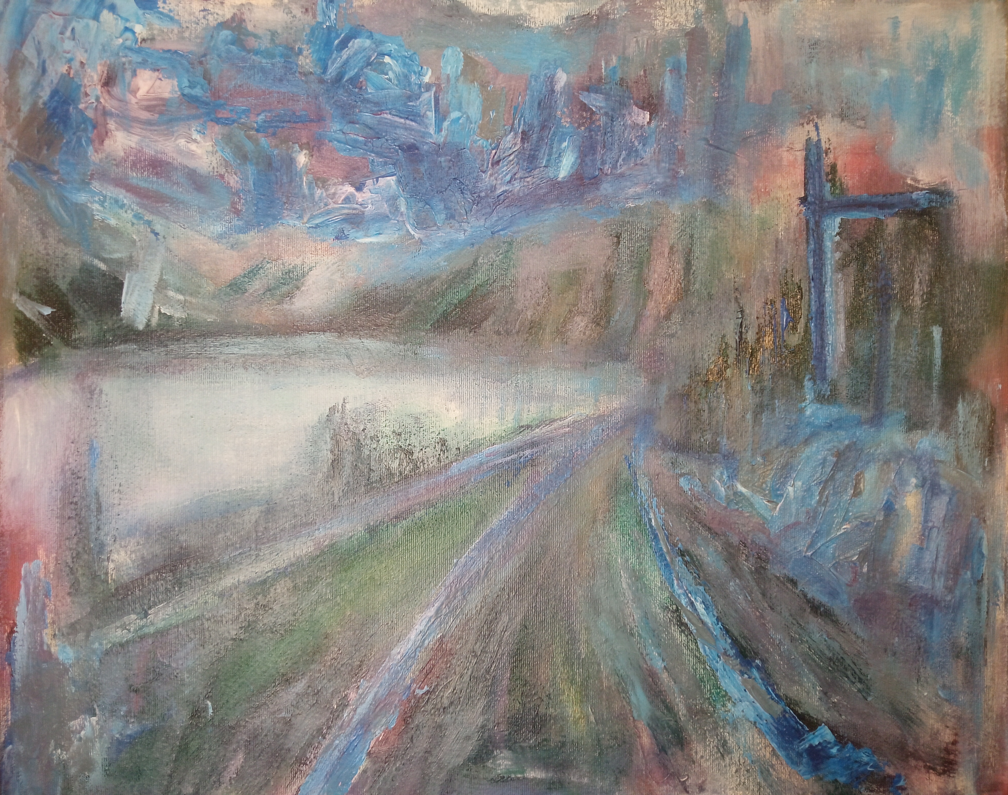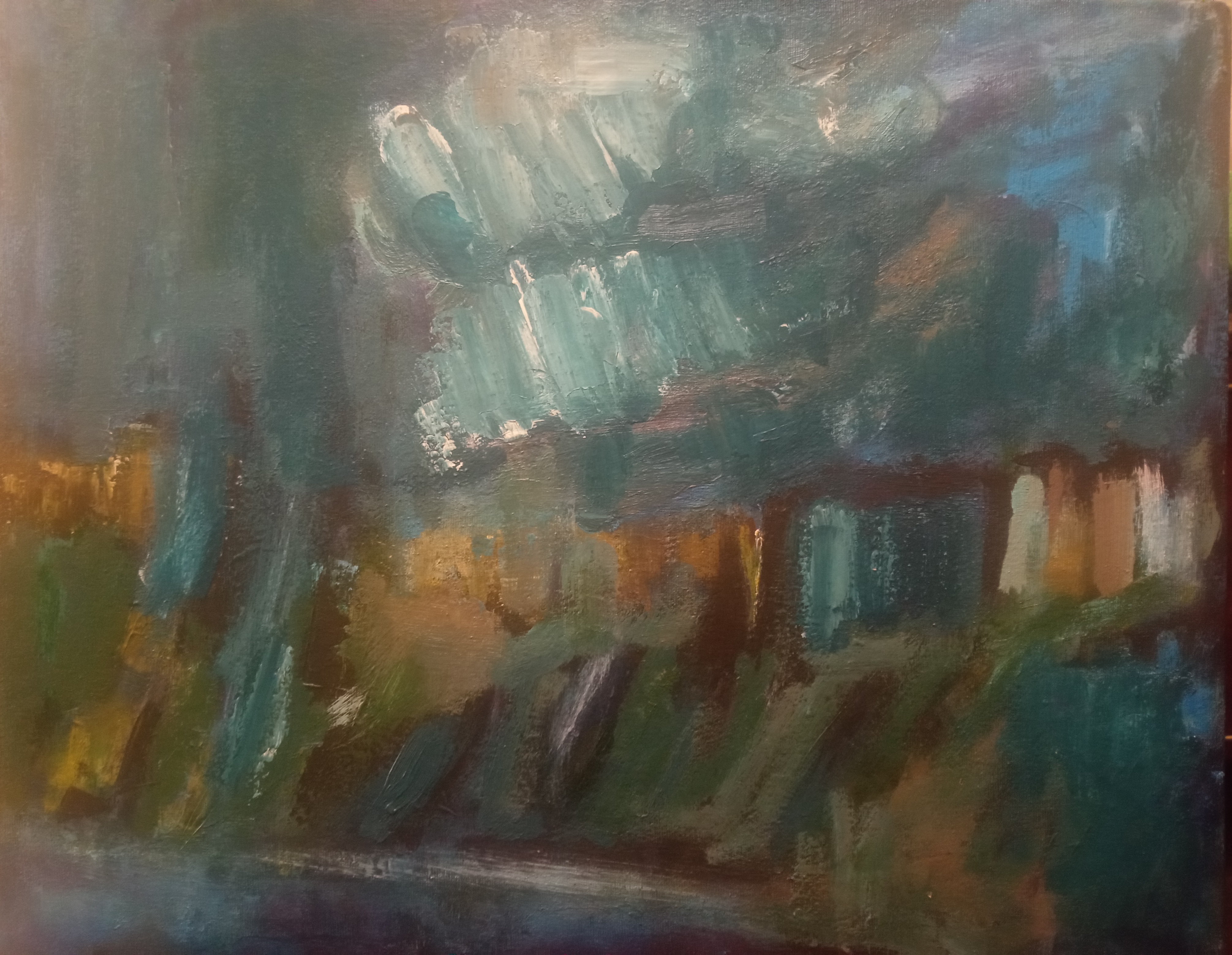 Абстрактный пейзаж №5. Масло на холсте 45х50 см, а абстрактный он потому что изначальное изображение нарисовано по принципу автоматического письма или вроде того.