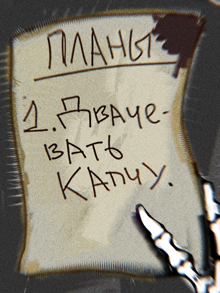 (...) На стол цепями прикован Рабов Работа Людской, 64 года. (...) Осматриваю по плану тело на наличие отличительных черт. Замечаю небрежный, кривой с синяками, красный партак "ТК". Что это значит я не знаю. Пишу в (...) Режется трудно, не выдали соответствующий инструмент, но (...) Он смотрит на меня широко раскрытыми глазами. Взгляд неопределенного эмоционального характера. ПРОСТО. ШИРОКО. РАСКРЫТЫЕ. ГЛАЗА. При этом криков от боли или движений тела нет. Злоба полностью перекрывает боль или просто не чувствует? Не может же он терпеть всё это (...) Раскрываю. Вижу внутренности. Вот 8 часовой рабочий день, вот 40 часовая рабочая неделя. Отпуск 28 календарных дней. Состояние ужасное, как он ещё не (...) (...) (...) (...) Операция закончена, органы герметично упакованы, передаю их заказчику. Получаю оплату за выполненную услугу. Всё как всегда. Всё как обычно. Только (...)