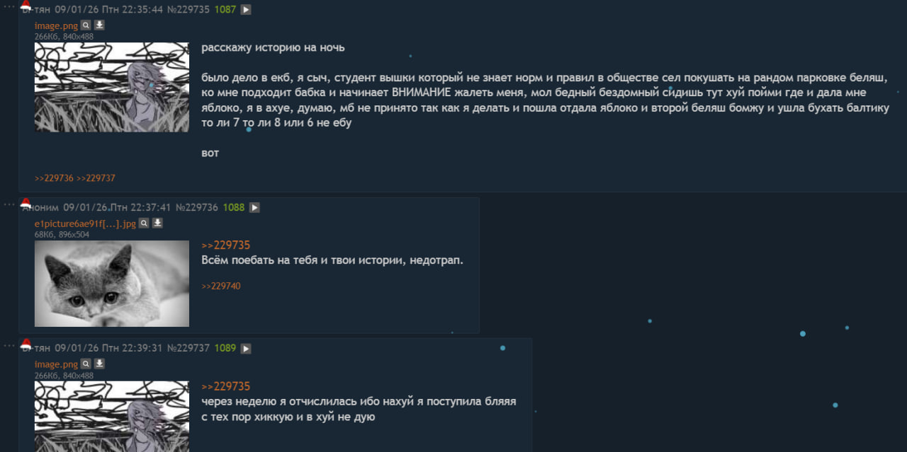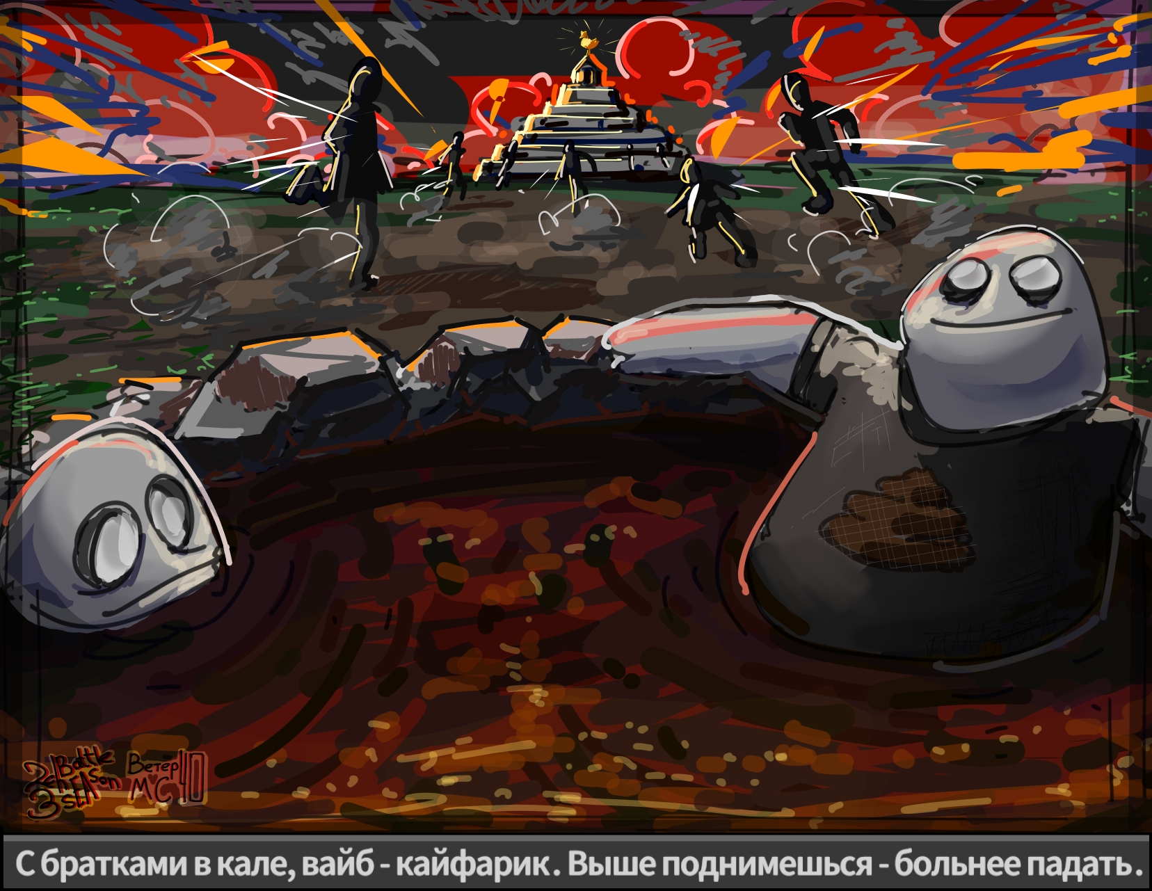 На небе пространство оторванное от земли, размер примерно половина футбольного поля. Ландшафт - лес, окружена деревянным забором, который легко можно перепрыгнуть, но лучше этого не делать, слишком высоко от земли. Внутри военные. Украинцы антисемиты ведут войну с русским евреями, не знаю, были ли они сионистами. Меня в этом хаосе чуть не убивают. Я убегаю к краю поля и вижу старика, внешне похож на Мамлеева, он говорит: - Я могу изменить сценарий, но надо заплатить. Я убегаю от него, продолжение битв и я возвращаюсь к деду: - Я согласен, т.е (шепотом) я согласна! И мы падаем вниз, но я знаю что мы закреплены в некое пространство между нами, ибо мы стоим на чем то, хоть и падаем вместе с этим пространством. Мне страшно, я кричу. - Хватит держаться за пространство. Спокойно отвечает дед. - Но, я уже упаду! - Нет. Он врёт? Хотя, какой смысл ему врать? Я отпускаю. Ощущения как будто прыгнула с крыши, но замерла в пространстве на месте. -А теперь скажи "fack you wave". Что? Странно, ну ладно. -fаааaAaAck yoUUuu Wave. С таким криком я проснулась в половине дня, ибо уснула только ранним утром.