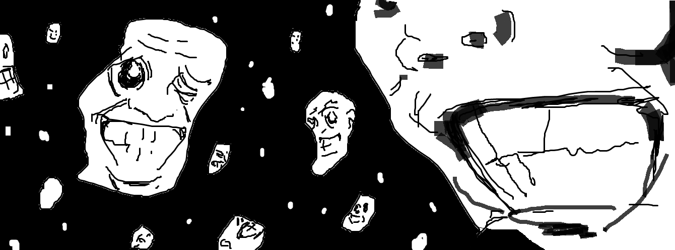 >>82376 Я видать настолько мастер художственного видения, что не отличу черный квадрат от моны лизы >.< Черепа я эти запомнил, думал псих какой-то зашел в нуботредик. Но это все-таки нечто оригинальное, хоть и жуткое. Я пока на такое не способен. Успехов тебе.