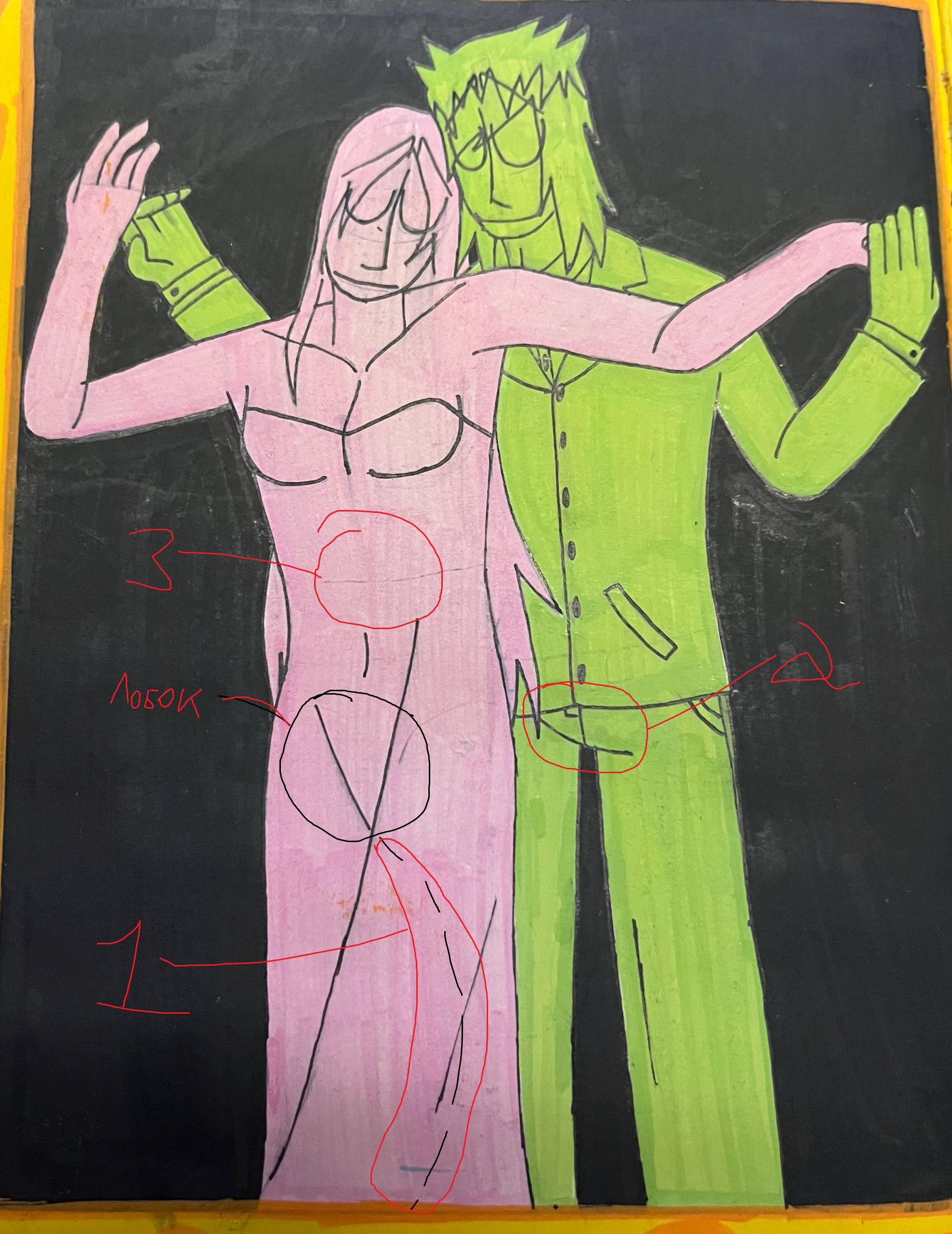 3. И про ту непонятную хуету, что ты нарисовал бабе над линией пупка. Я блять разглядывал эти блять руны минут 7, но так и не понял что они значат. Если ты пытался изобразить свой автопортрет, то ты забыл дорисовать сперму на лице.