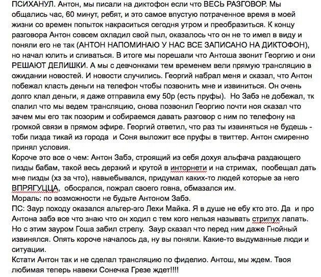 Настя Суслова писала о том что боится что антон забе хочет ее зарезать? Не удивляйтесь потом, когда найдете голову Насти Сусловой в реке Неве или даже УНИТАЗЕ ИОНОТЕКИ НАПРИМЕР мимоЕрегаПонасенков