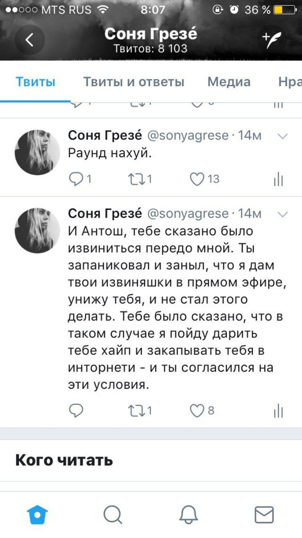 >>171707 Справедливо хейтят на рипе, там стс, киркоров, продался, вся хуйня. Там норм челы сидят. А тут петухи обиженные какую-то херню развели непонятную.