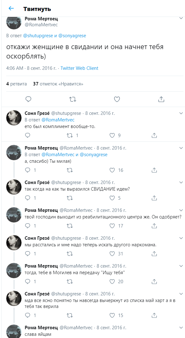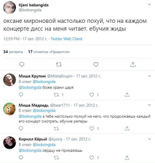 >>190475 Чел, это надо в мск/питере жить, лично приходишь в оксишоп и проходишь собеседование. Договариваешься об оплате (деньгами не платят, только мерчем). Учитывают кол-во постов и насколько сильно они разгоняют тредик. А если серьезно, имеется один из самых жестких ботов - шизичка и походу с онкологией https://twitter.com/shuttle_dreamin Мб сидит дома целый день, огресия на весь мир так и прёт и зубы скрипят, что-то типа сталингулага, только хейтит не рашку, а рэп-тусовку, вроде как посасывает бойцам петуха, оксибога/антихуй хейтит. Один раз сама себя спалила, выложив скрины батолтреда и неск раз еще про тред постила. Кидали её инсту с одной фоткой, где она без бровей, без волос, короче после химии, страшное зрелище. Рак в прямом смысле