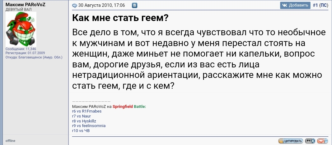 >>190276 Я -цать тредов назад пояснял какому-то клоуну, что стать известным != быть попсарем, Игорь, ты? Лучника же я знал еще до хх17, поэтому мне приятнее топить за знакомого, родного, нежели за каких-то ноунеймов, которые пришли на серьезных щщах с серьезным посылом сосать рвать за победу под насмешки пантеона, без напряга получающего свои баллы за олдовость, тем более, лучник довольно-таки скилловый мц. До раковых форсов школия в пабликах вк вообще нет дела, они всегда найдут чем заняться. В 2015 таким образом зафорсили оксану, и она стала любимой певичкой публики РИПодаунов, офк.