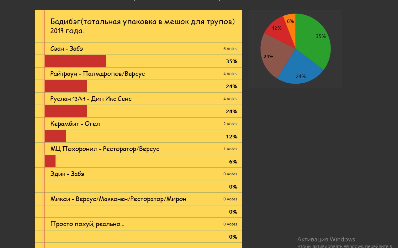 >>190289 Оу чел, ты нихуя им не докажешь, даже не пытайся. Это жирухи просто с другим знаком, поведение абсолютно схожее, только еще более истеричное. Любой, кто заденет их кумира, будет хейтится и обзаведётся кучей детских кличек-дразнилок, привыкай. Ты в песочнице и задел чей-то куличик. Правда, не совсем понятно, почему за лысого тут топят, на том же фрешбладе он себя абсолютно дискредитировал, показав, как он шарит в батол репе. Про респекты в твиттере лёхам медь, монтанам я вообще молчу. На семнашке раунды у него очень средненькие, первая часть 3 раунда вообще уныние. Если они на это закрывают глаза, т.к. он их старый добрый знакомый, за которого тупа приятно болеть, так вот здесь то же самое тогда, ведь для многих и Лучник - старый добрый мц, которого приятно было услышать после долгого перерыва, даже если скилл у него в написании текстов немного упал, всем похуй, тк он заебурил нормально в диссовой части на драматикс и поэтому все так за него топят. И хуйня со школьниками-фанатами и прочими натянутыми фактами про попс не прокатит, тк за драматикс как раз залётный молодняк в основном и топил и больше всех бомбил от её вылета, а дохуища олдовых мц оценили 3 раунд лучника как пиздатый.