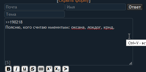 >>190382 > но никто не узнает как ты хотел сделать сочный миник ОксиБ-гу ибо анонемность!11 Поэтому сюда заходят всякие рифмабесы, чайники, черты и мы никогда не узнаем что они пишут.