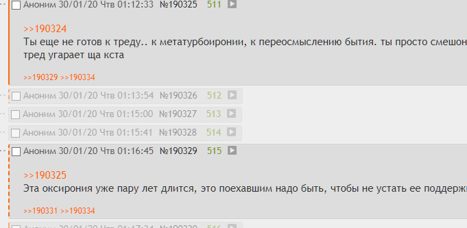 >>190324 /b/рат, я узнал тебя. Спасибо, что ты адекват, и еще в этом треде хотя мне тоже настоебывает эта метаирония, но если исключительно лулзами заправляться, то тут есть смысл сидеть. Хочется верить, да, я наивный, что говно изыдет, но пока что с трудом. А твою позицию я еще вчера оценил. Еще раз спасибо за адекватность.
