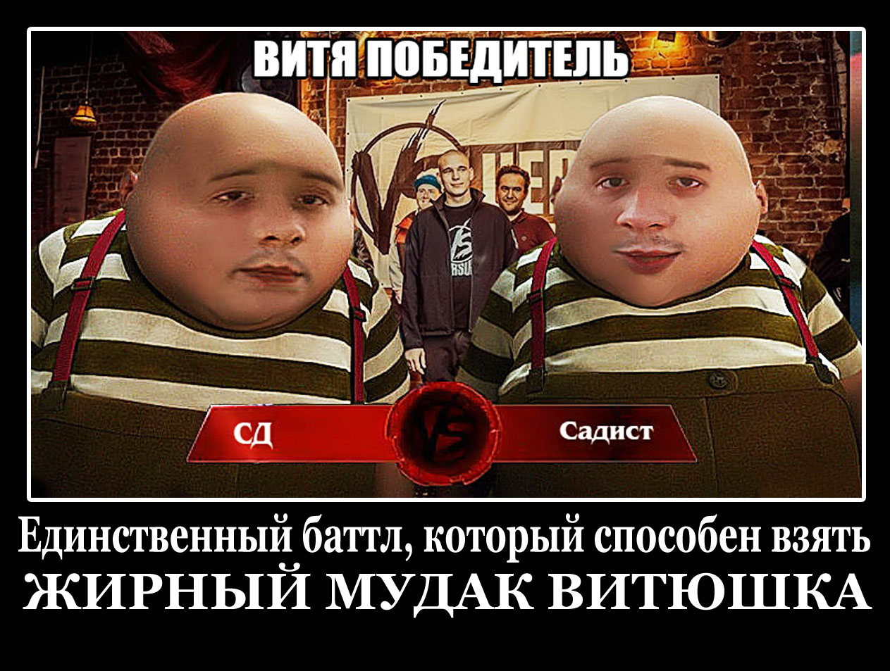 >>194386 Двачую, заебали всяких шлюх да хуеплётов форсить, когда есть настоящий герой треда Витя СД ака СаДист, оформивший лучший трек баттла и похоронивший карьеру инцеста