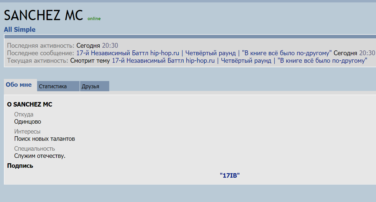 В секунды чудные, когда Витя с Дуней еще болтались двумя мутными капельками На болту у создателя, что только что сходил по маленькому Я не участвовал в баттлах, а очень плотно изучал математику, Был волосатым ботаником, фанатом Летова с Янкой, в майке «металлика» События моей жизни очевидны, но абсолютно немыслимы Начнём с того, что еще с детского садика меня почему-то все пиздили Я соловел от мысли: «суки, как вы мне все ненавистны!» Социопатия во мне сочеталась с любовью к отчизне Зачитанные книжки Достоевского, Кастанеды и Ницше Уже тогда я знал отлично, что значит себя чувствовать лишним Уже тогда я нашел было ноу-хау в постижении дао: Думай о главном, не забывая поёбывать баб, как академик Ландау (хоть бы одна дала) Но видно есть же бог на свете, - так думал я Наткнувшись на слово «хип-хоп» в википедии Дальше всё не так сложно, в очевидности неочевидных событий Судьба смеялась, похоже, когда свела меня с Витей Так видите ли, еще толком не понял где я, бля Как какого-то хуя вышел на самого модного хип-хоп деятеля И очевидно всем, что мне здесь ничего не светит Спасибо судьбе хоть за возможность поиметь его как следует