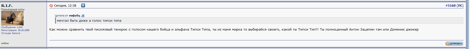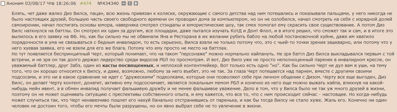К чему я это всё. Во первых, я думаю вам полагается знать - до каких чертей нужно дойти чтобы заниматься подобным. Явно чувачок не может пережить исход нашего баттлеца. Ох как явно. Во вторых, через этот пост, хотел бы к этому созданию обратиться:
