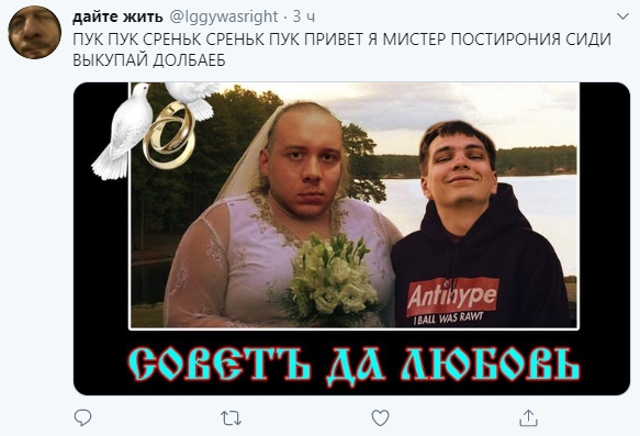Инсайды подъехали Антихуй развалился официально. Вика с Загеем посрались из-за баб. Хитрожопый киргизский хохол мутит мутные мутки с менеджеркой элджея/бывшей менеджеркой крида и скруджи Ульяной Бананой и поддерживает в твиторе лего-тян, которую хейтят сд, абу и даже говнов.