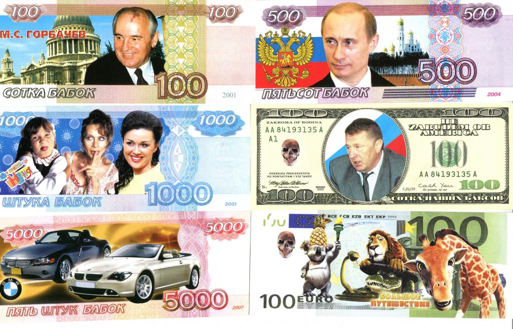 В школьные времена, в годах так 2004-2006 у нас в школьной библиотеке продавались такие вот "книжные закладки" в виде "баксов" и "бабок", что являлось сувенирными копиями банкнот с рандомными рисунками, начиная от скринов из популярных на то время передач и фильмов, заканчивая просто рандомными пикчами из гугла. Стоимость была 2-3 руб за штуку, что являлось весьма дорогим удовольствием, ибо мне 10 летнему пиздюку давали 10-15 рублей в день на обеды (50 коп чай, 2 руб булочка, 5 руб каша или суп, еще оставалось на "жвачки по рублю" после школы). Да да, зумерам не понять как мы выживали на 10 рублей в день. А брать еду с собой из дома считалось лютым зашкваром у всех дноклассников, хз почему)